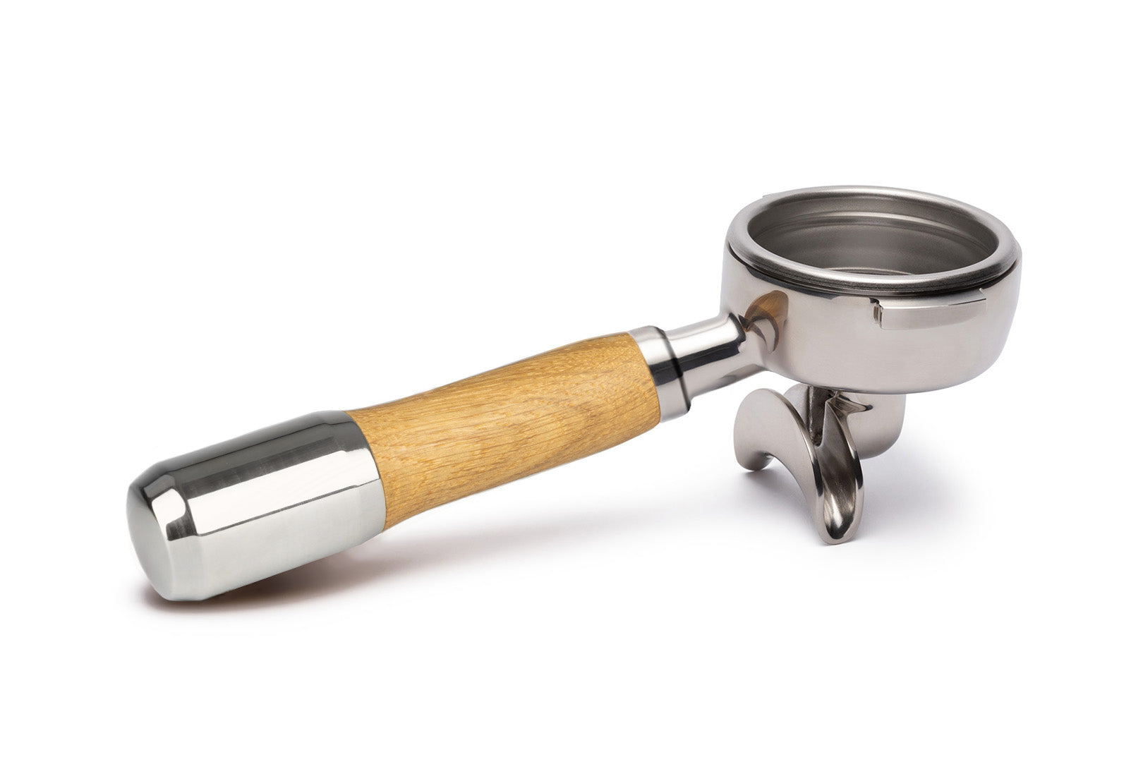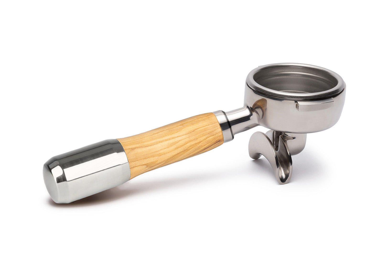Edelstahl Siebträger mit Holzgriff Doppelauslauf