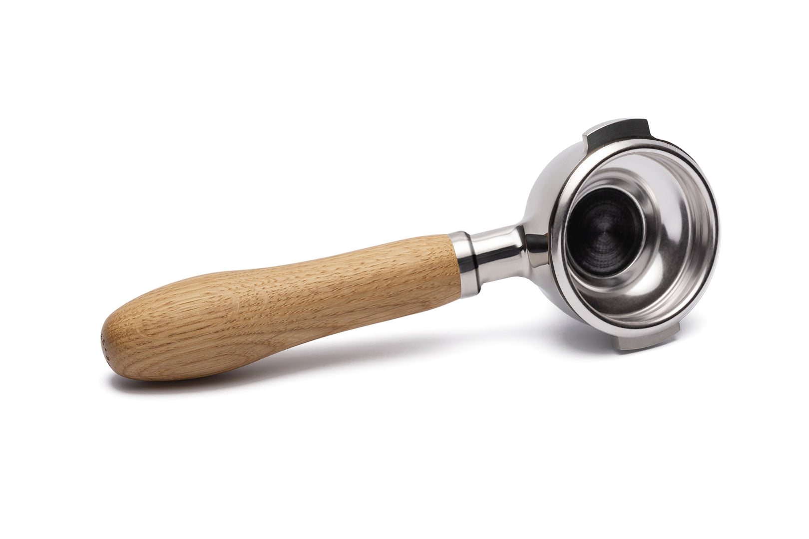 Edelstahl Siebträger mit Holzgriff Einzelauslauf
