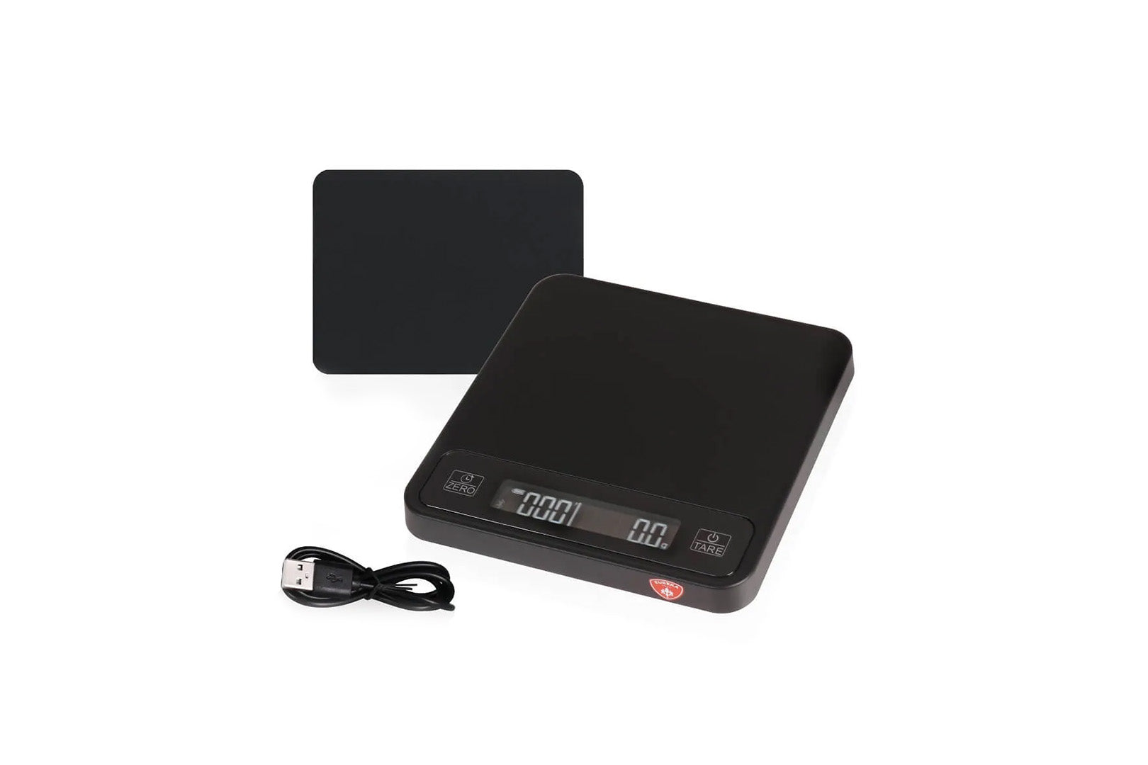 Die gummierte Oberfläche sorgt für stabilen Halt, auch bei vibrierenden Maschinen. Hochwertige Materialien und eine Schutzabdeckung machen die Waage robust und langlebig. Als Extra kann die Abdeckung auch als Wiegeschale verwendet werden – ein praktisches Detail für den Barista-Alltag.