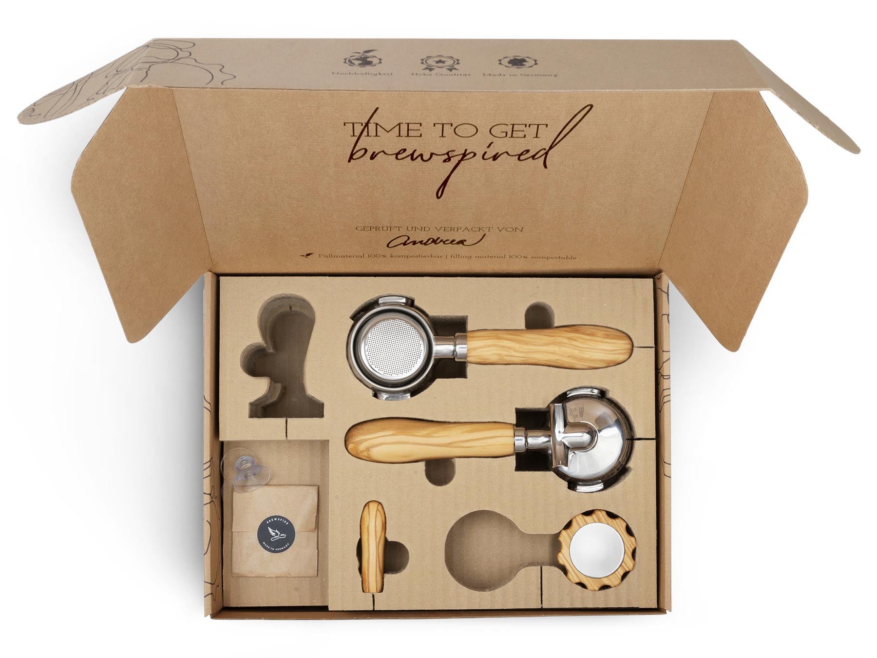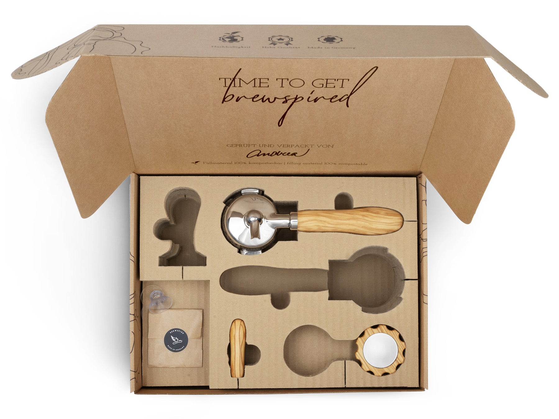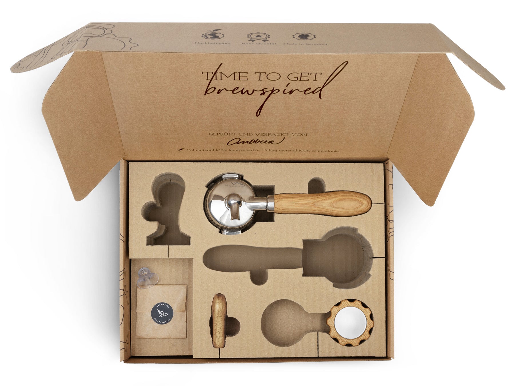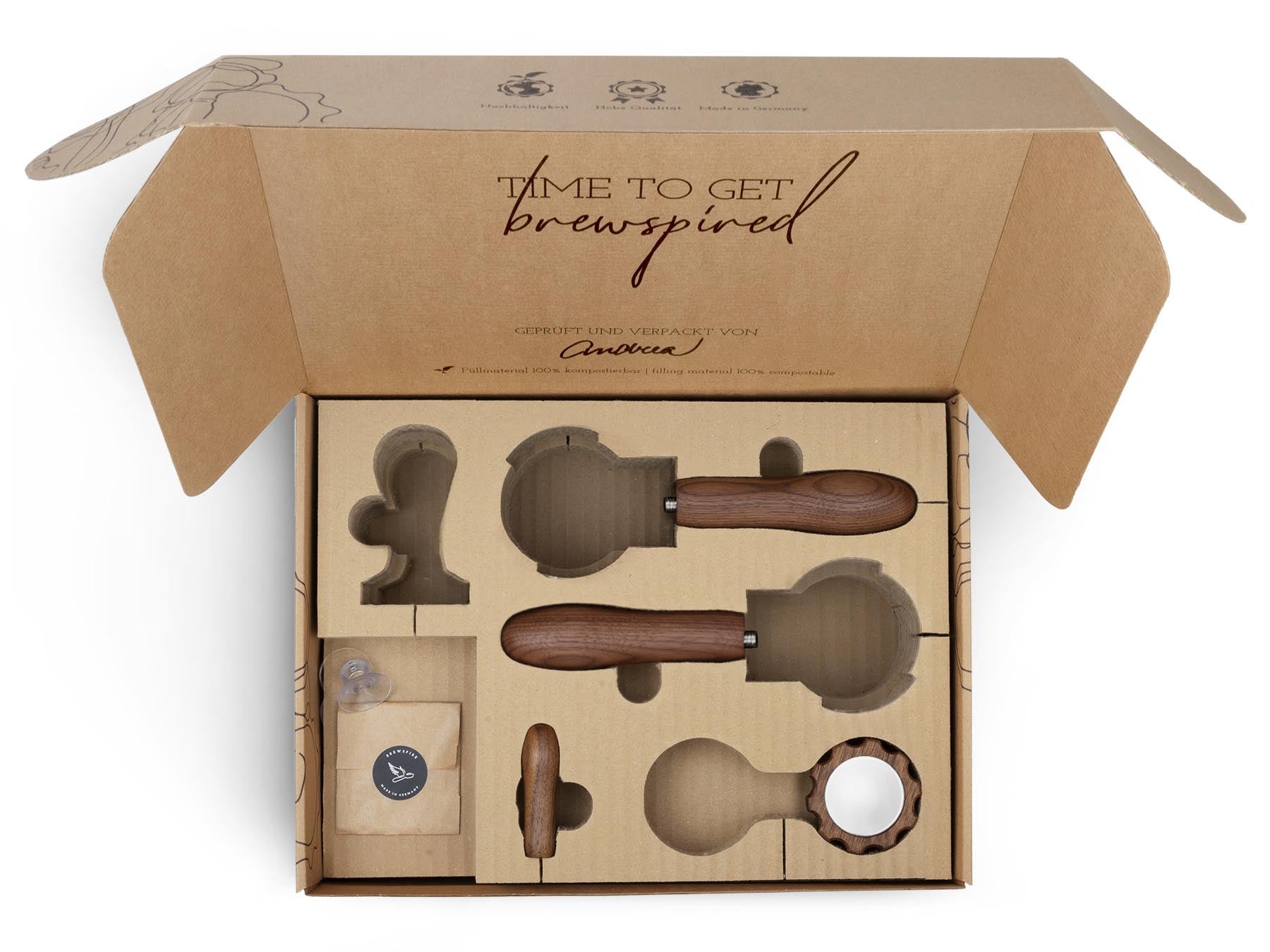 Wir von Brewspire stehen für Kaffee-Genuss mit allen Sinnen. Für viele Heimbaristi zählt die einheitliche Ästhetik der Kaffee-Ecke und das Gefühl der Espressozubereitung genauso dazu, wie der Genuss des Getränks selbst. Mit unseren Veredelungssets verleihst du deiner Siebträger-Espressomaschine den optischen und haptischen Feinschliff, der zu deinen Wünschen passt. Die Nobel-Griffserie von Brewspire eignet sich besonders als Upgrade für elegante E61-Klassiker wie z.B. ECM-Maschinen. Der nahtlose Übergang von geöltem Vollholz zu poliertem Edelstahl sorgt für eine hochwertige Haptik und Optik. Das Brewspire Unterscheidungsmerkmal: Im Griff befindet sich eine integrierte thermische Entkopplung, damit der Edelstahlteil nicht zu heiß wird. Unsere Veredelungssets sind flexibel erweiterbar: Die Accessoires der Marken Brewspire und eurista sind sprichwörtlich aus dem selben Holz geschnitzt.