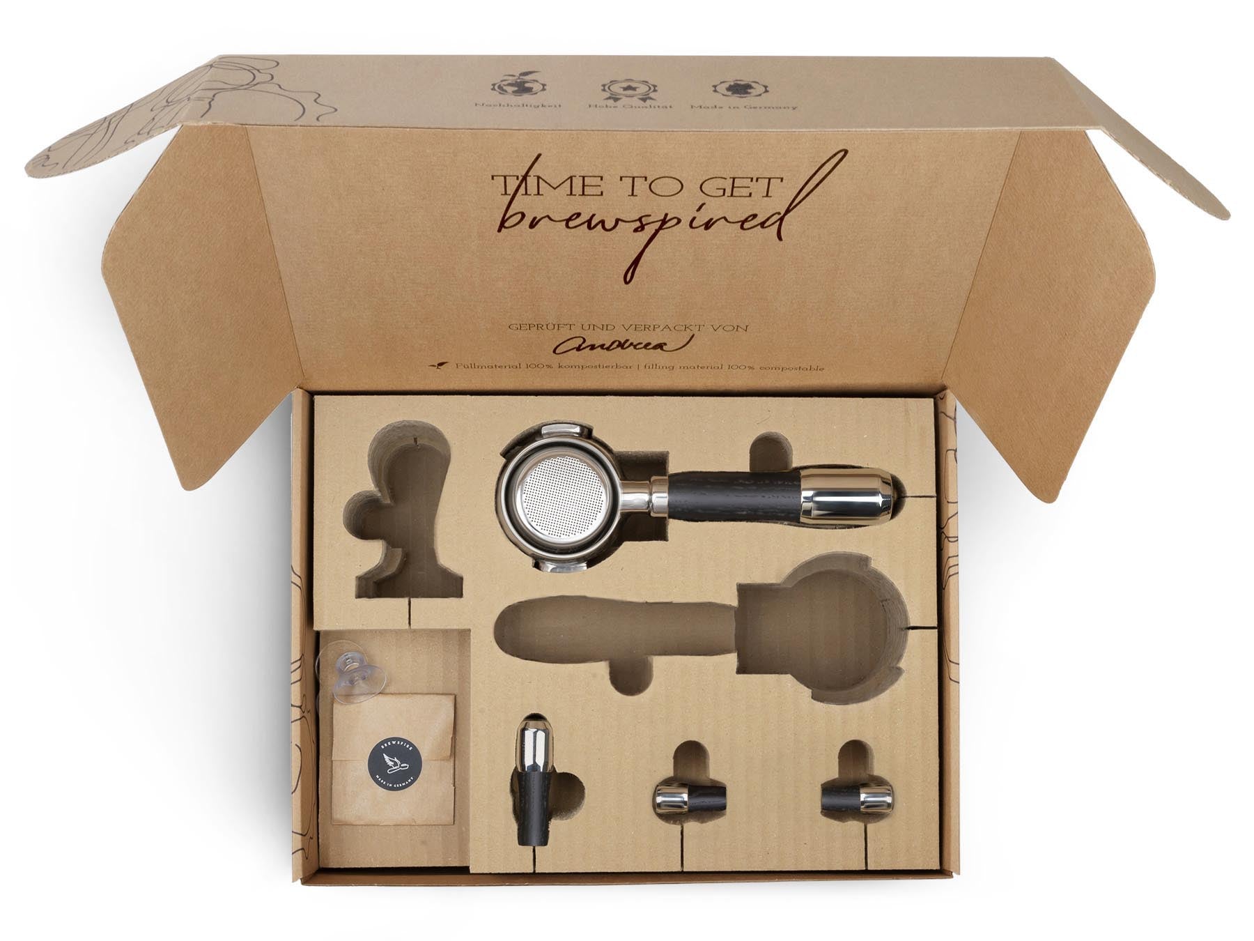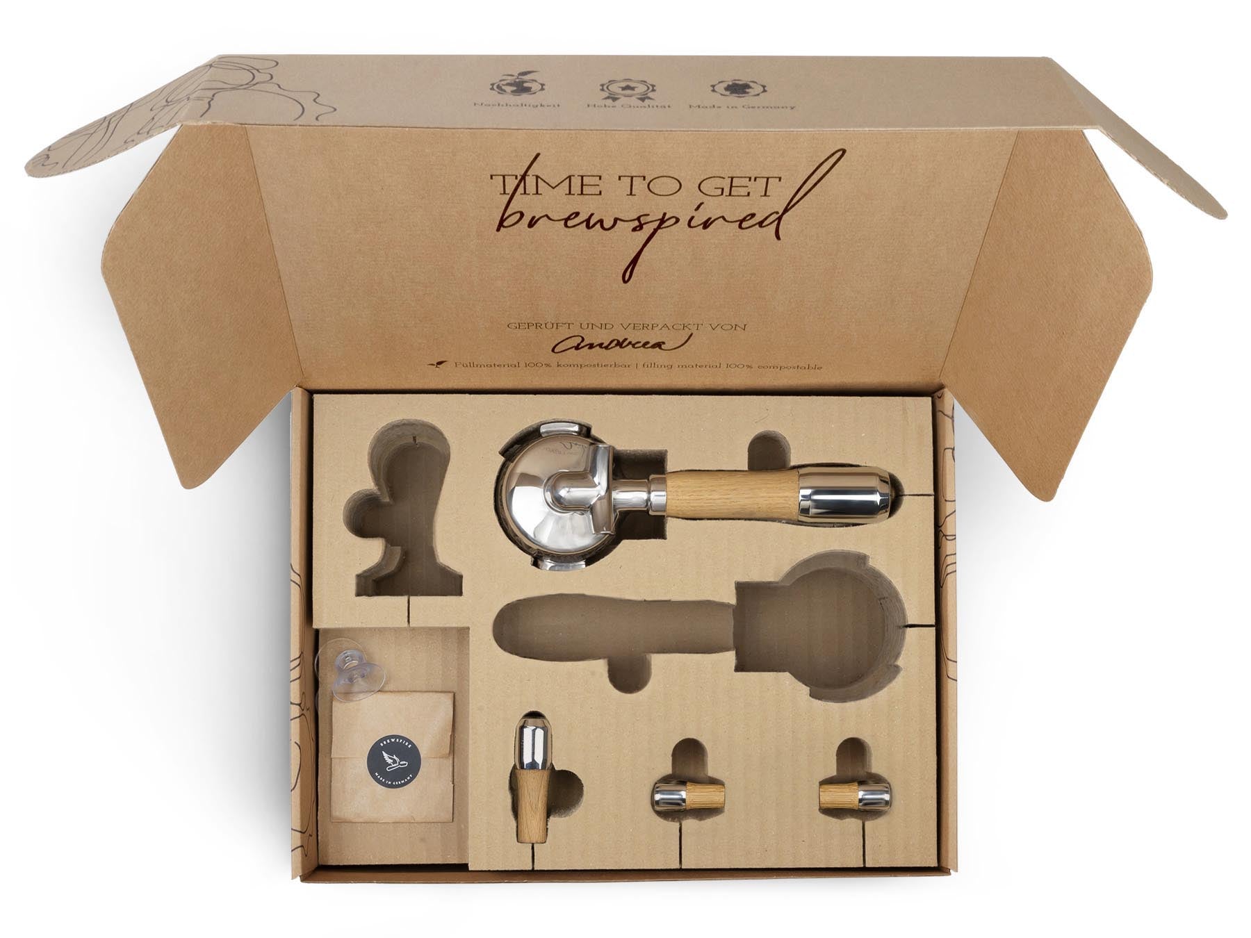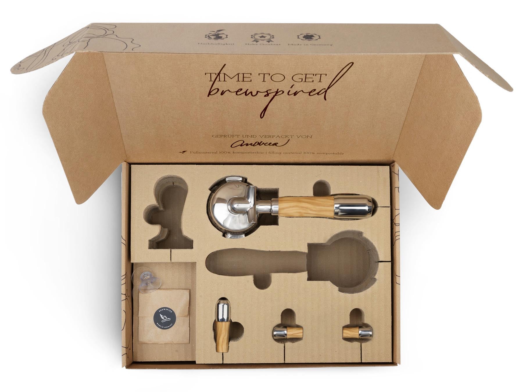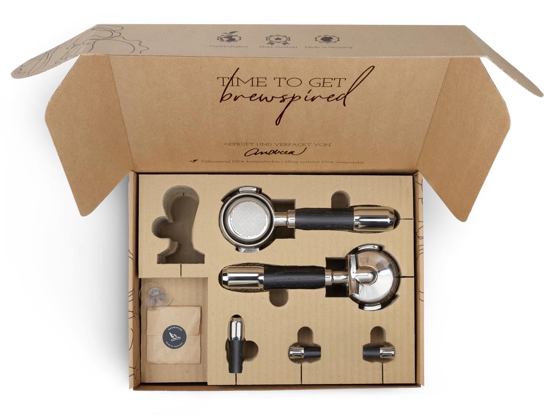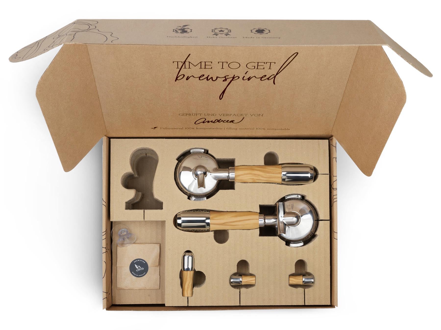 Wir von Brewspire stehen für Kaffee-Genuss mit allen Sinnen. Für viele Heimbaristi zählt die einheitliche Ästhetik der Kaffee-Ecke und das Gefühl der Espressozubereitung genauso dazu, wie der Genuss des Getränks selbst. Mit unseren Veredelungssets verleihst du deiner Siebträger-Espressomaschine den optischen und haptischen Feinschliff, der zu deinen Wünschen passt. Die Nobel-Griffserie von Brewspire eignet sich besonders als Upgrade für elegante E61-Klassiker wie z.B. ECM-Maschinen. Der nahtlose Übergang von geöltem Vollholz zu poliertem Edelstahl sorgt für eine hochwertige Haptik und Optik. Das Brewspire Unterscheidungsmerkmal: Im Griff befindet sich eine integrierte thermische Entkopplung, damit der Edelstahlteil nicht zu heiß wird. Unsere Veredelungssets sind flexibel erweiterbar: Die Accessoires der Marken Brewspire und eurista sind sprichwörtlich aus dem selben Holz geschnitzt.