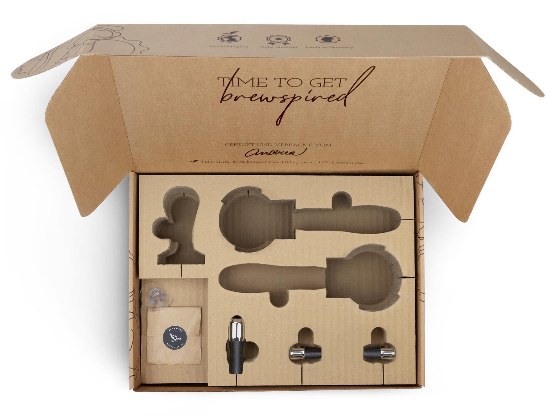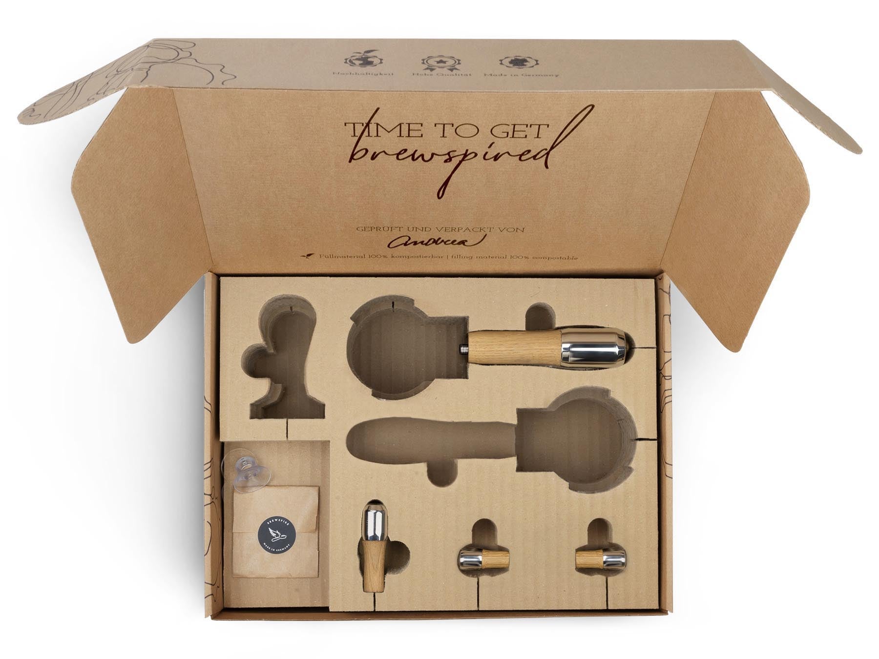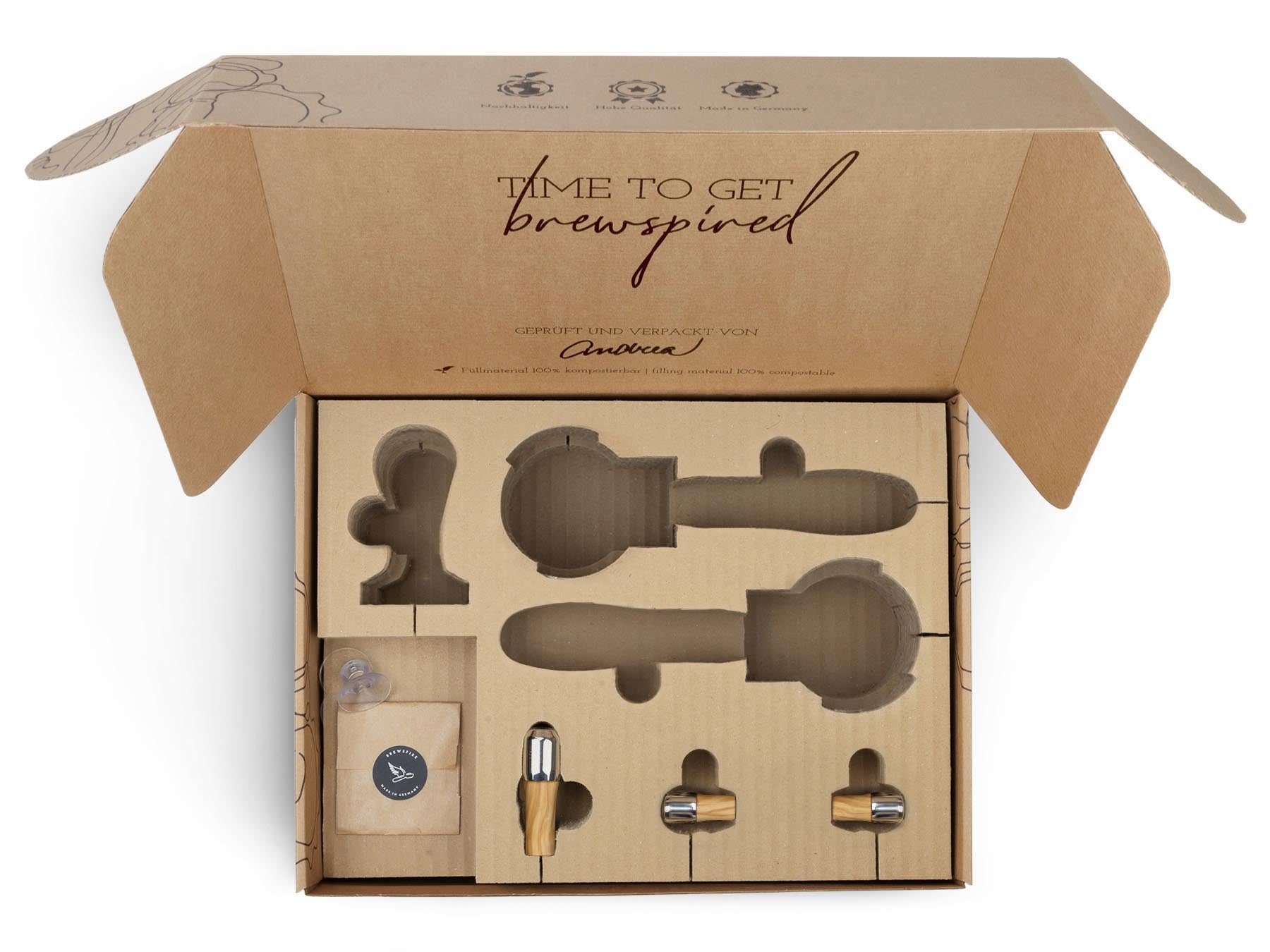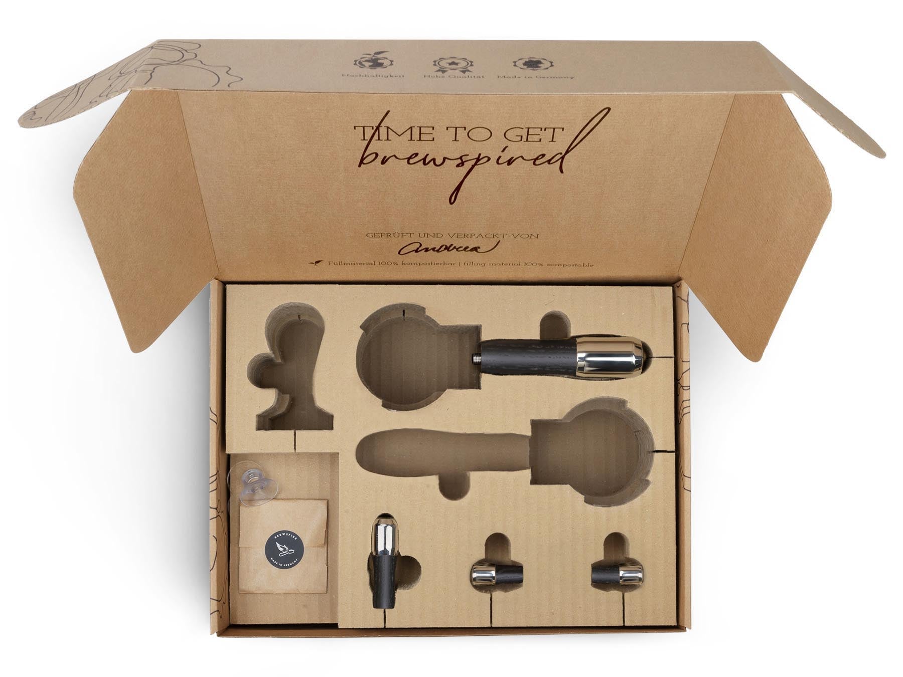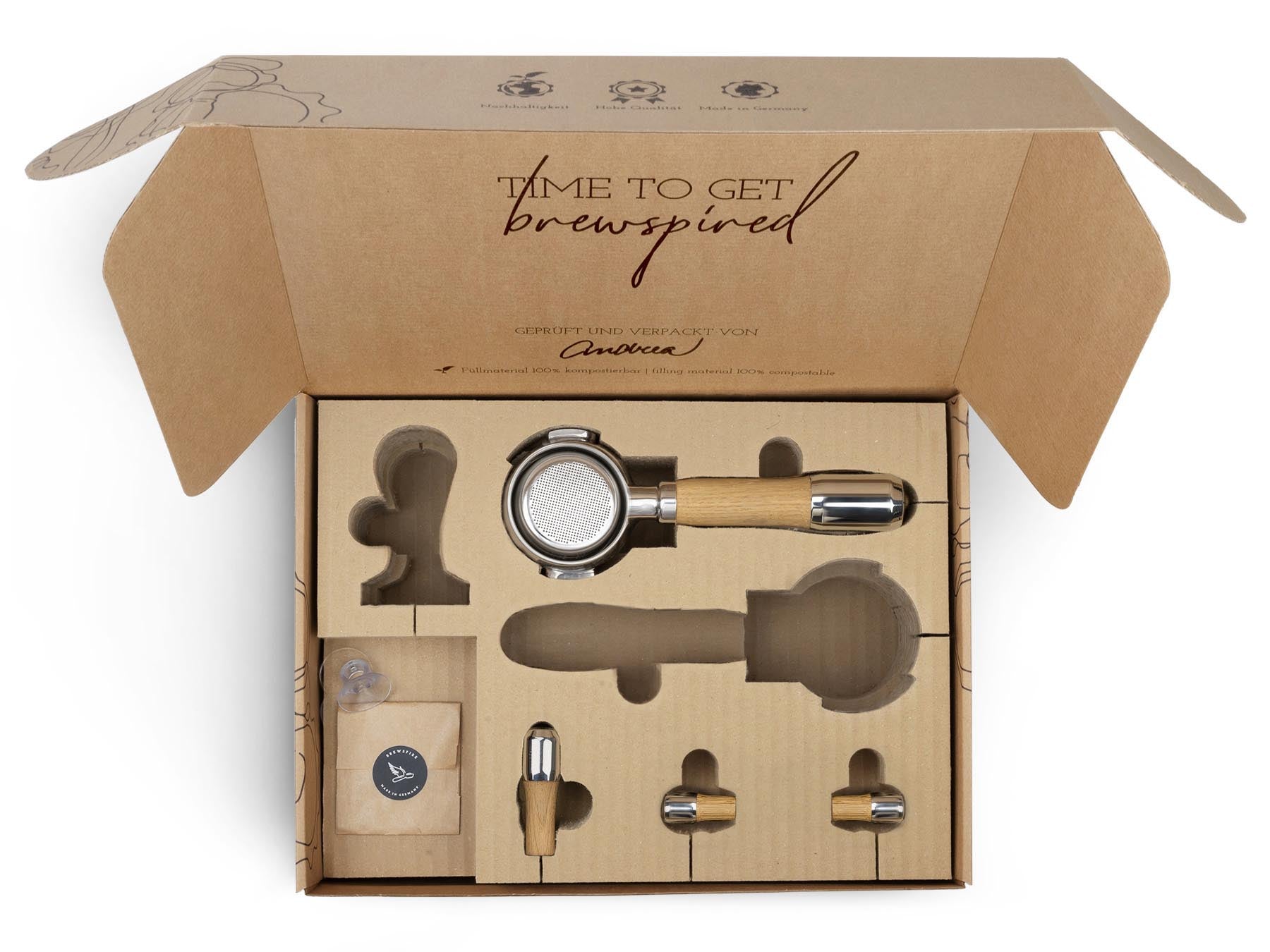 Wir von Brewspire stehen für Kaffee-Genuss mit allen Sinnen. Für viele Heimbaristi zählt die einheitliche Ästhetik der Kaffee-Ecke und das Gefühl der Espressozubereitung genauso dazu, wie der Genuss des Getränks selbst. Mit unseren Veredelungssets verleihst du deiner Siebträger-Espressomaschine den optischen und haptischen Feinschliff, der zu deinen Wünschen passt. Die Nobel-Griffserie von Brewspire eignet sich besonders als Upgrade für elegante E61-Klassiker wie z.B. ECM-Maschinen. Der nahtlose Übergang von geöltem Vollholz zu poliertem Edelstahl sorgt für eine hochwertige Haptik und Optik. Das Brewspire Unterscheidungsmerkmal: Im Griff befindet sich eine integrierte thermische Entkopplung, damit der Edelstahlteil nicht zu heiß wird. Unsere Veredelungssets sind flexibel erweiterbar: Die Accessoires der Marken Brewspire und eurista sind sprichwörtlich aus dem selben Holz geschnitzt.