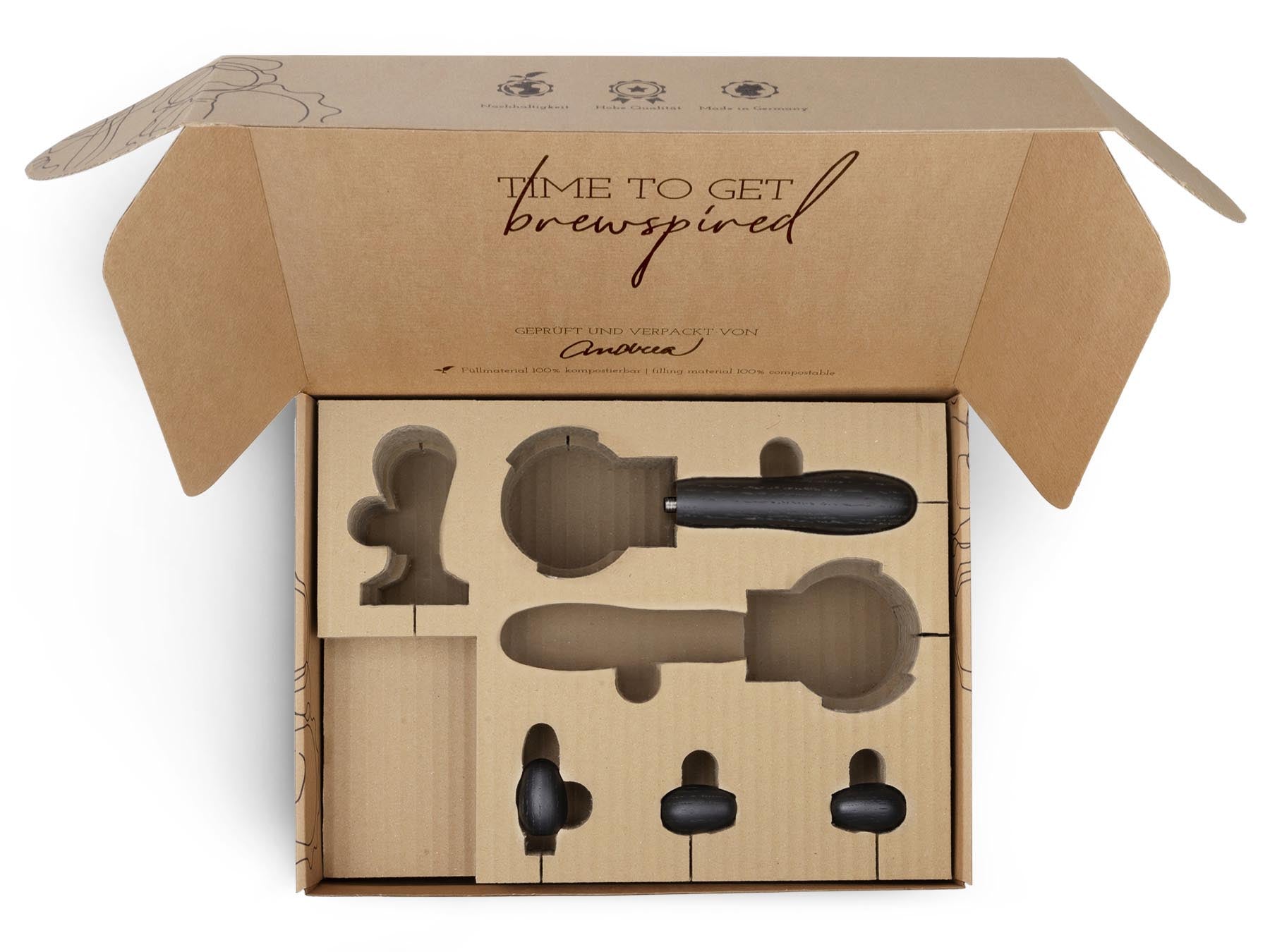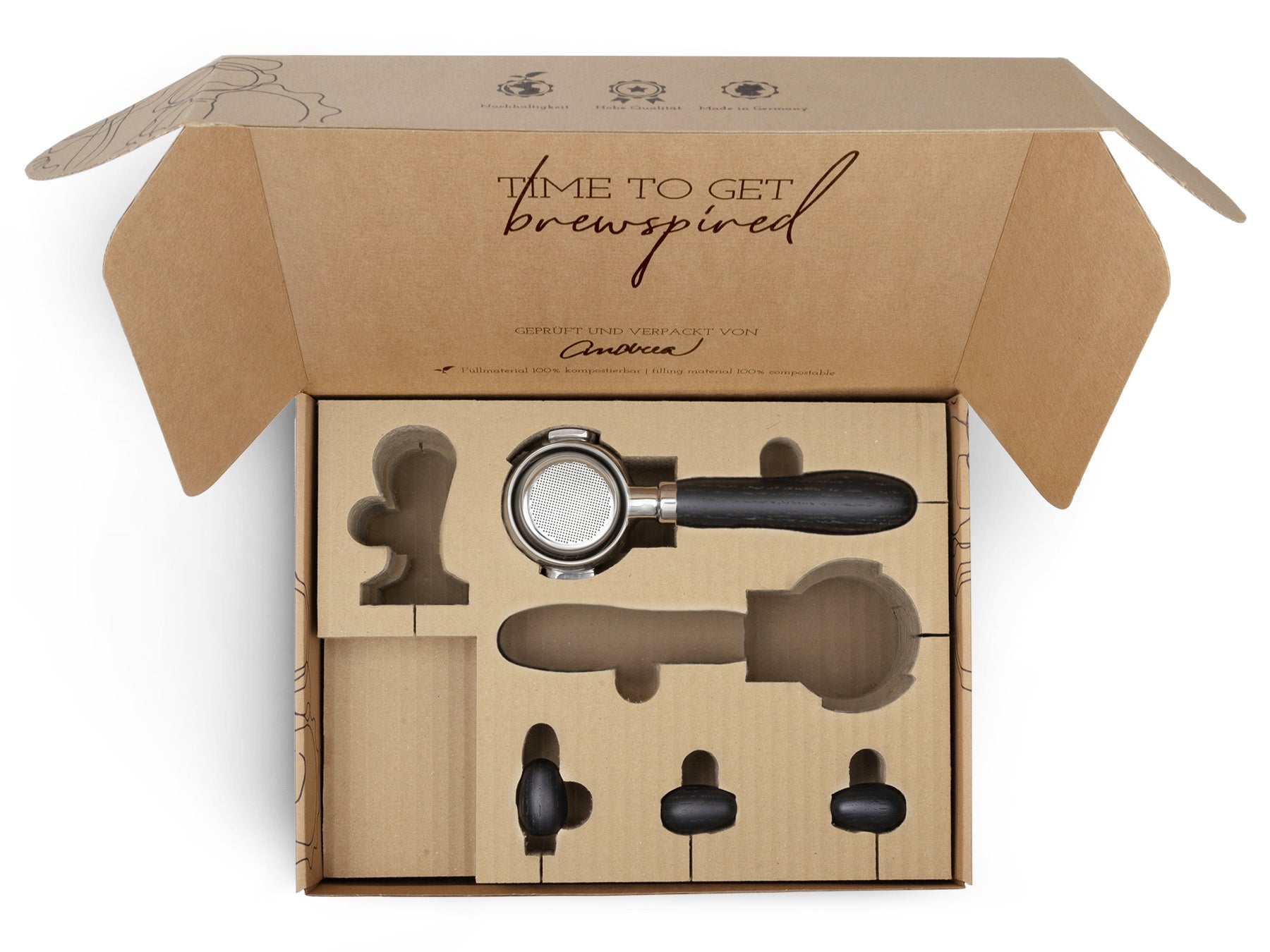 Wir von Brewspire stehen für Kaffee-Genuss mit allen Sinnen. Für viele Heimbaristi zählt die einheitliche Ästhetik der Kaffee-Ecke und das Gefühl der Espressozubereitung genauso dazu, wie der Genuss des Getränks selbst. Mit unseren Veredelungssets verleihst du deiner Siebträger-Espressomaschine den optischen und haptischen Feinschliff, der zu deinen Wünschen passt. Durch die eingelassene Edelstahlbeschwerung liegen unsere Siebträgergriffe angenehm und satt in der Hand. Unsere Veredelungssets sind flexibel erweiterbar: Die Accessoires der Marken Brewspire und eurista sind sprichwörtlich aus dem selben Holz geschnitzt.