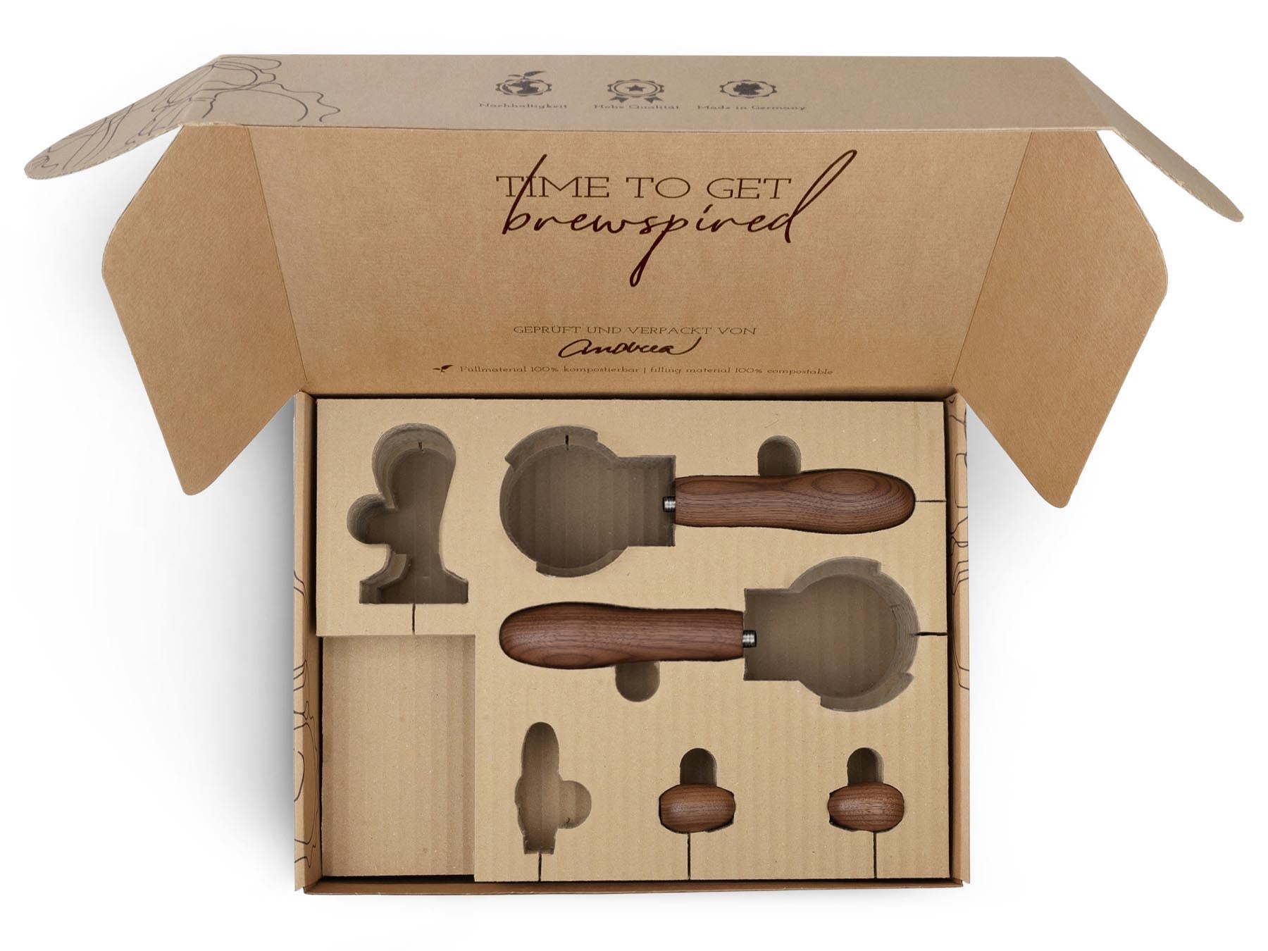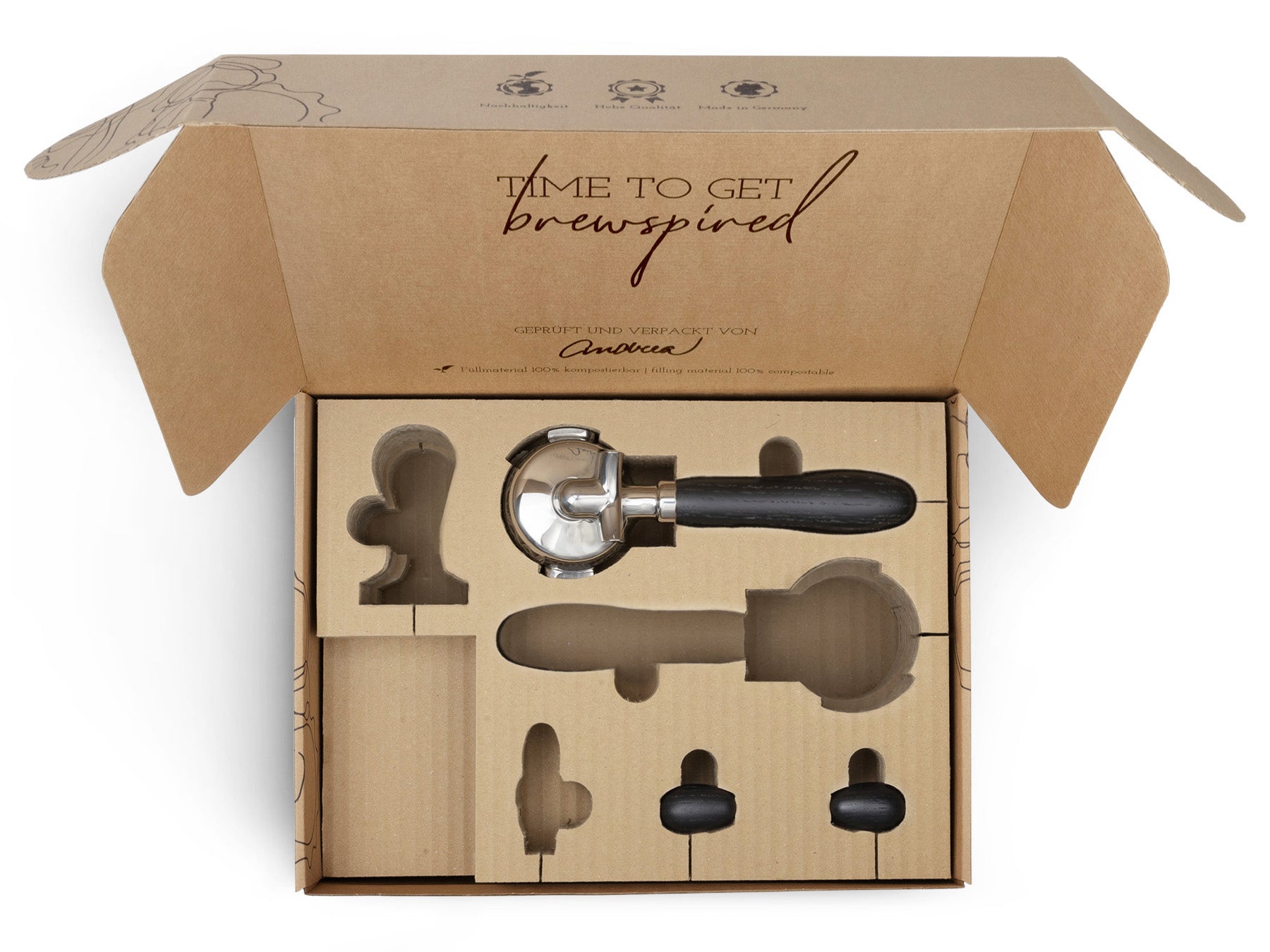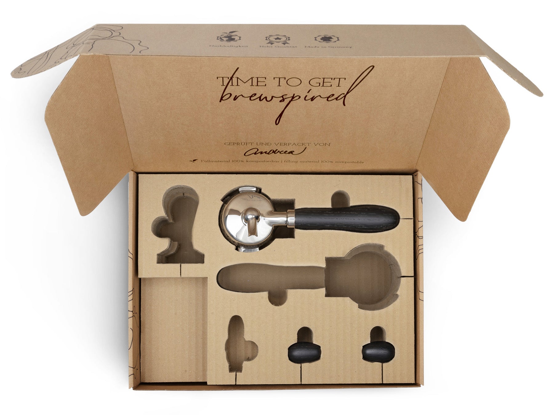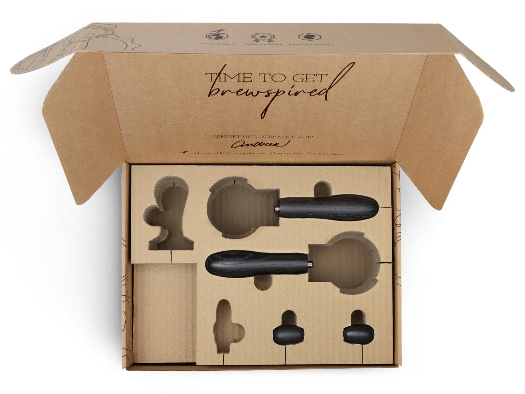 Wir von Brewspire stehen für Kaffee-Genuss mit allen Sinnen. Für viele Heimbaristi zählt die einheitliche Ästhetik der Kaffee-Ecke und das Gefühl der Espressozubereitung genauso dazu, wie der Genuss des Getränks selbst. Mit unseren Veredelungssets verleihst du deiner Siebträger-Espressomaschine den optischen und haptischen Feinschliff, der zu deinen Wünschen passt. Durch die eingelassene Edelstahlbeschwerung liegen unsere Siebträgergriffe angenehm und satt in der Hand. Unsere Veredelungssets sind flexibel erweiterbar: Die Accessoires der Marken Brewspire und eurista sind sprichwörtlich aus dem selben Holz geschnitzt.