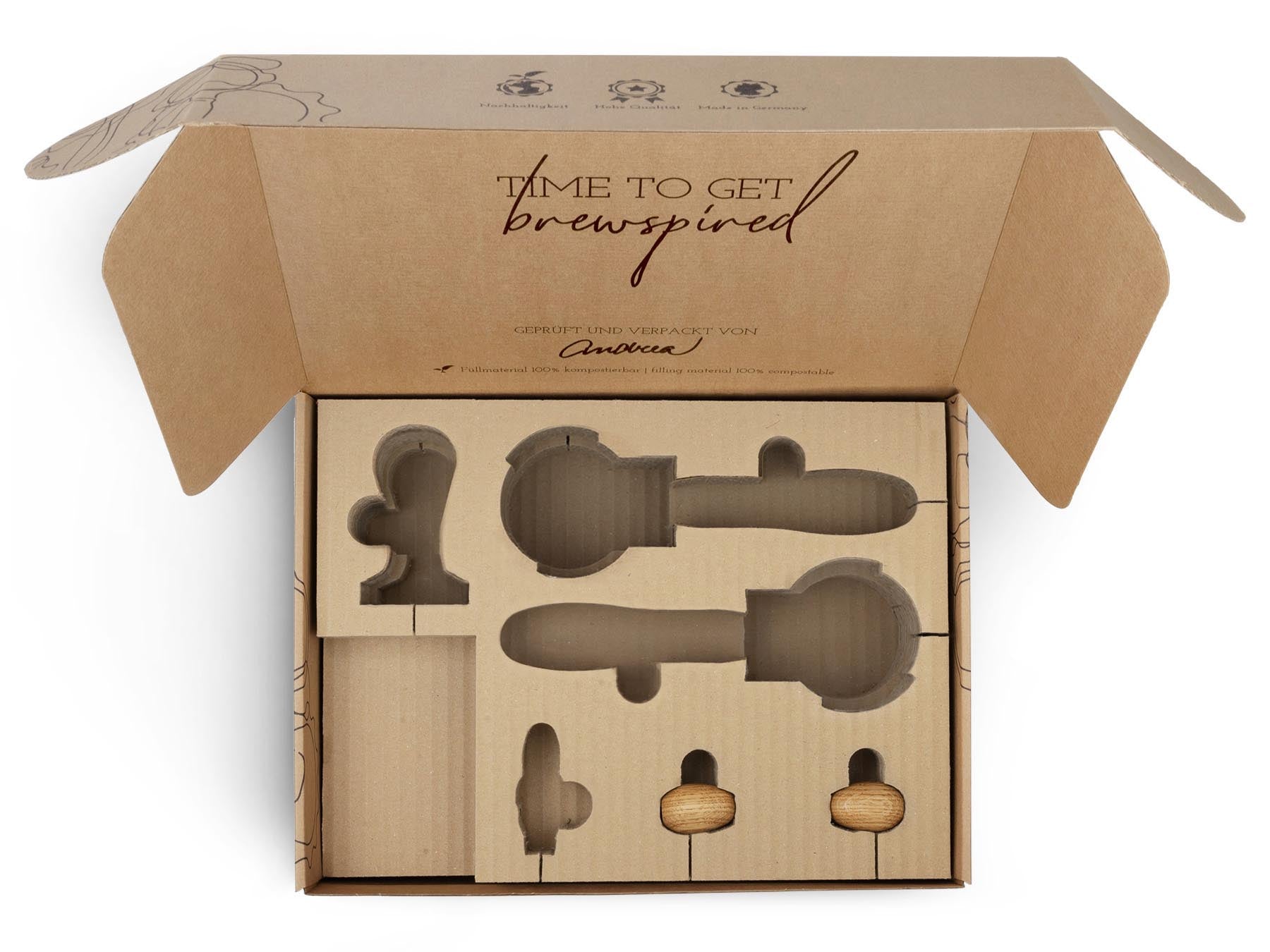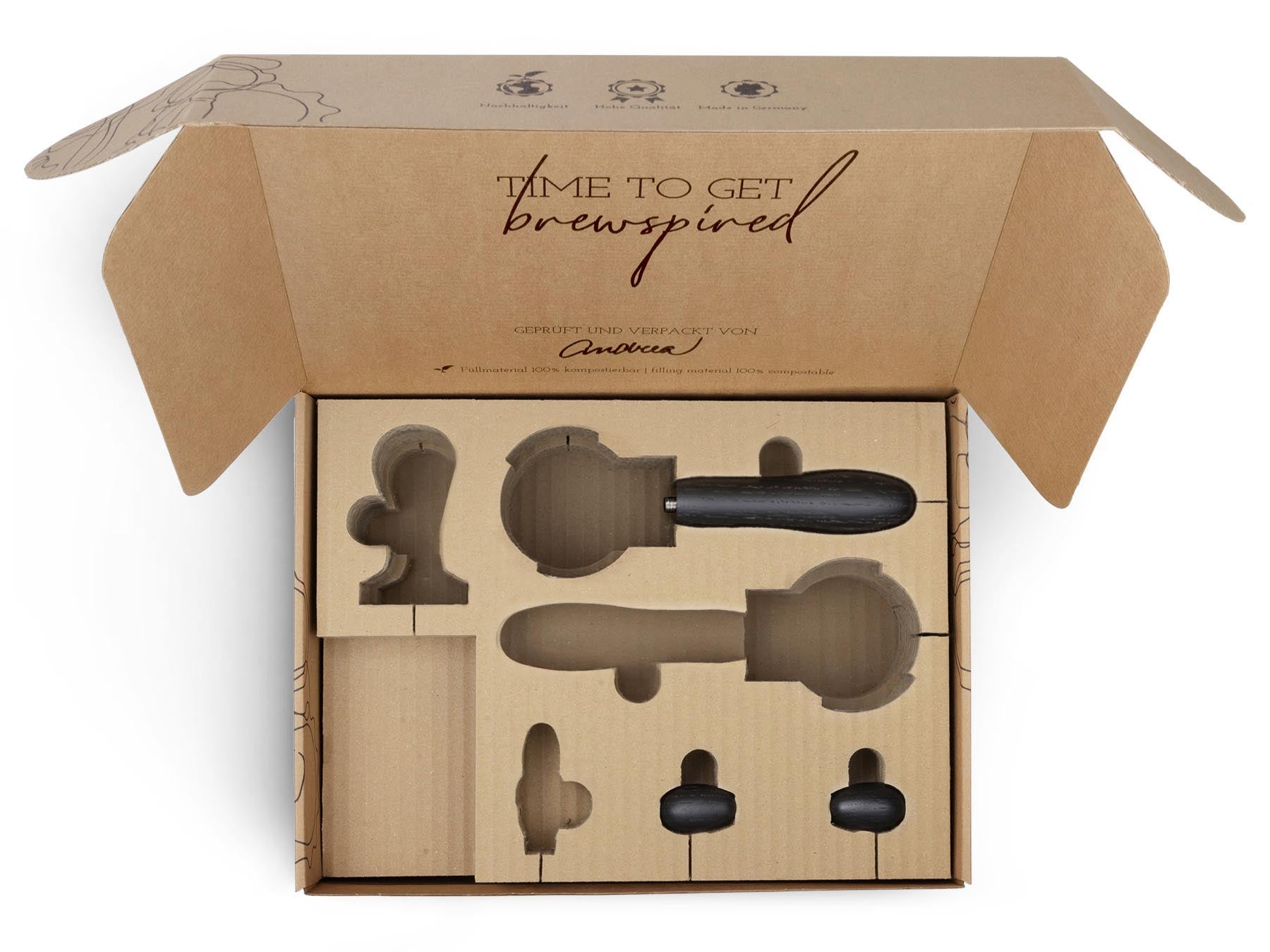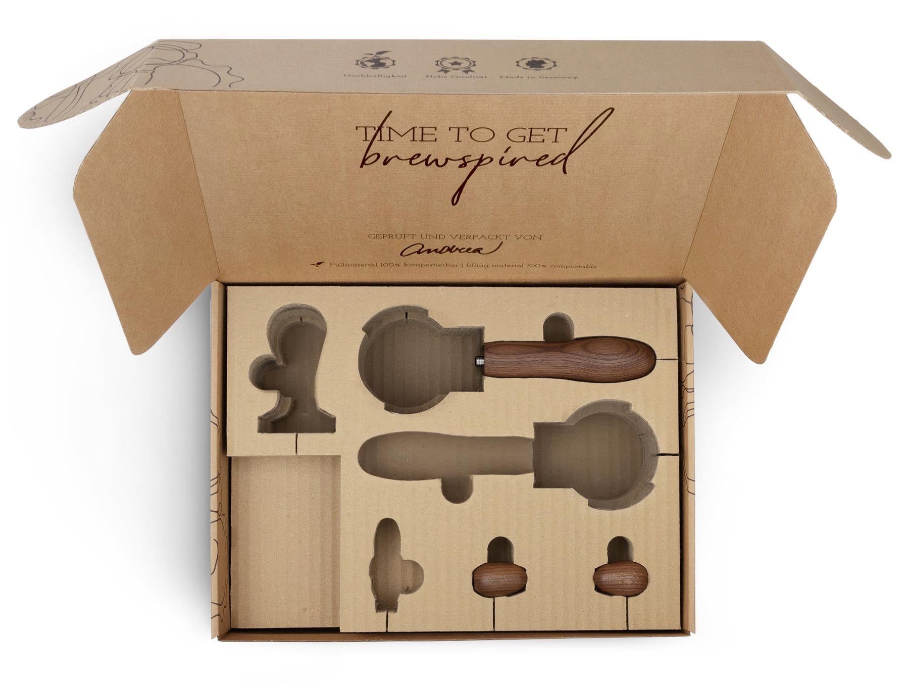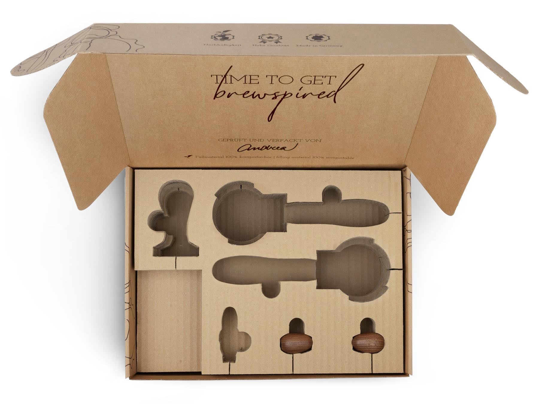 Wir von Brewspire stehen für Kaffee-Genuss mit allen Sinnen. Für viele Heimbaristi zählt die einheitliche Ästhetik der Kaffee-Ecke und das Gefühl der Espressozubereitung genauso dazu, wie der Genuss des Getränks selbst. Mit unseren Veredelungssets verleihst du deiner Siebträger-Espressomaschine den optischen und haptischen Feinschliff, der zu deinen Wünschen passt. Durch die eingelassene Edelstahlbeschwerung liegen unsere Siebträgergriffe angenehm und satt in der Hand. Unsere Veredelungssets sind flexibel erweiterbar: Die Accessoires der Marken Brewspire und eurista sind sprichwörtlich aus dem selben Holz geschnitzt.