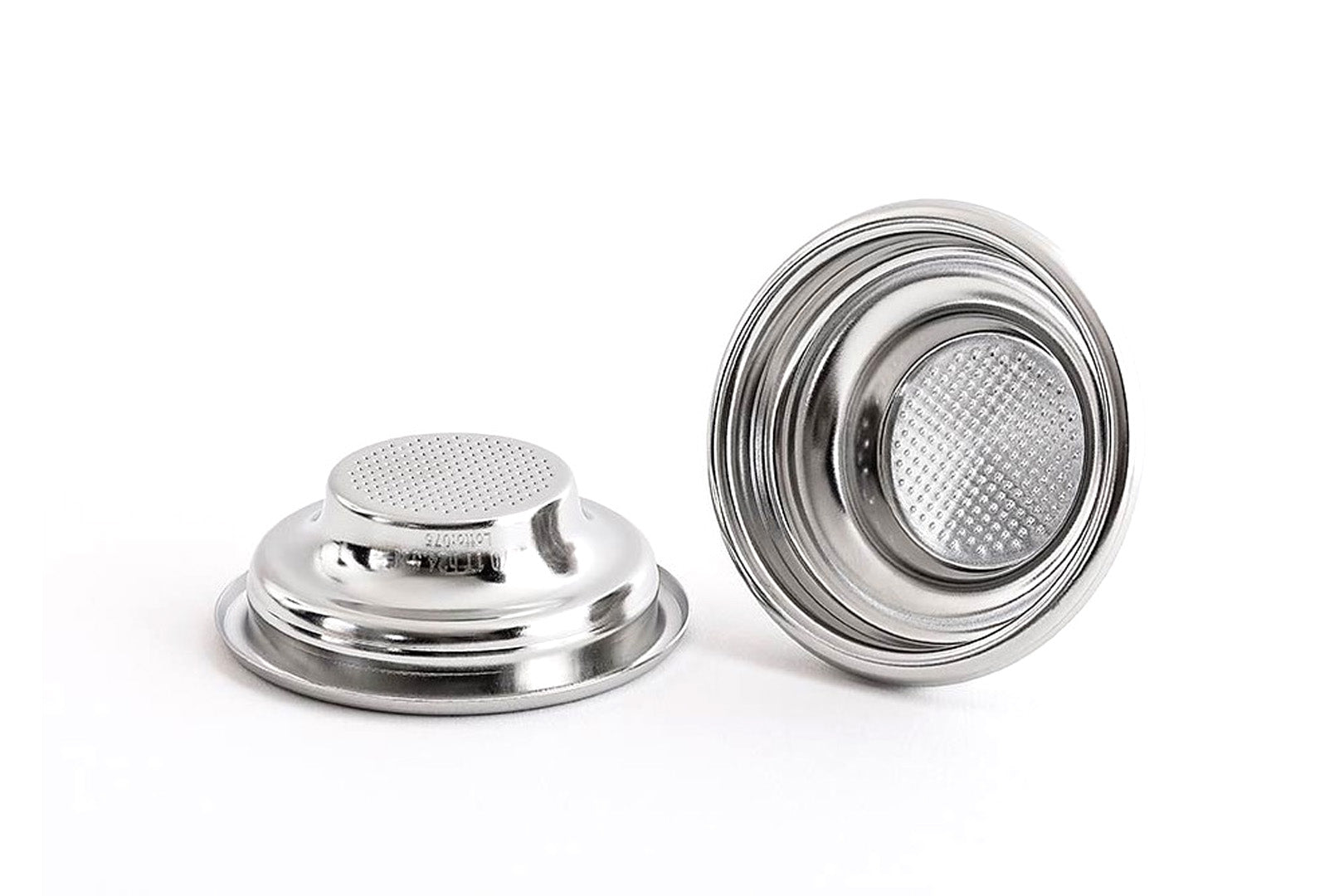 Kleines Präzisionssieb für konstante Einzeldosen und feine Crema: 253 präzise ausgelaserte, innen polierte Löcher fördern ein sauberes Flussverhalten und erleichtern das Abklopfen.