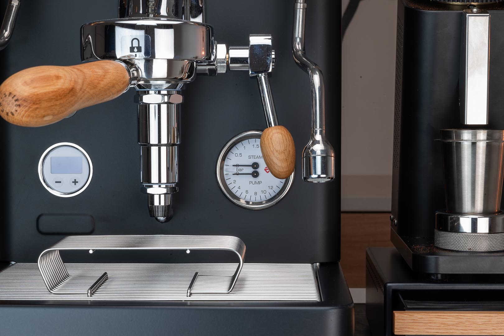 Die Lelit Bianca „Obsidian“ ist die optische Veredelung der ursprünglichen Lelit Bianca und verfügt über ein nahezu vollständig matt-schwarz pulverbeschichtetes Gehäuse und ist in dieser Form einzigartig. Dazu ist die Tassenablage mit einem hochwertigen und dezenten PU-Lederimitat (vegan) belegt. Dies hat nicht nur optische Vorteile, sondern schützt deine Maschine gleichzeitig langfristig vor Klappern & Kratzern.