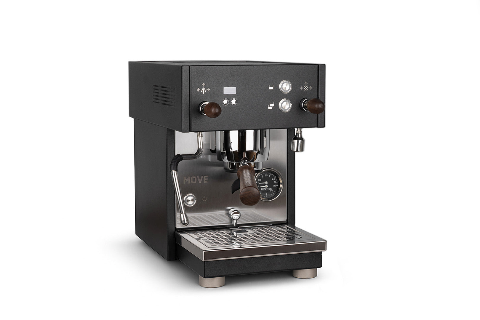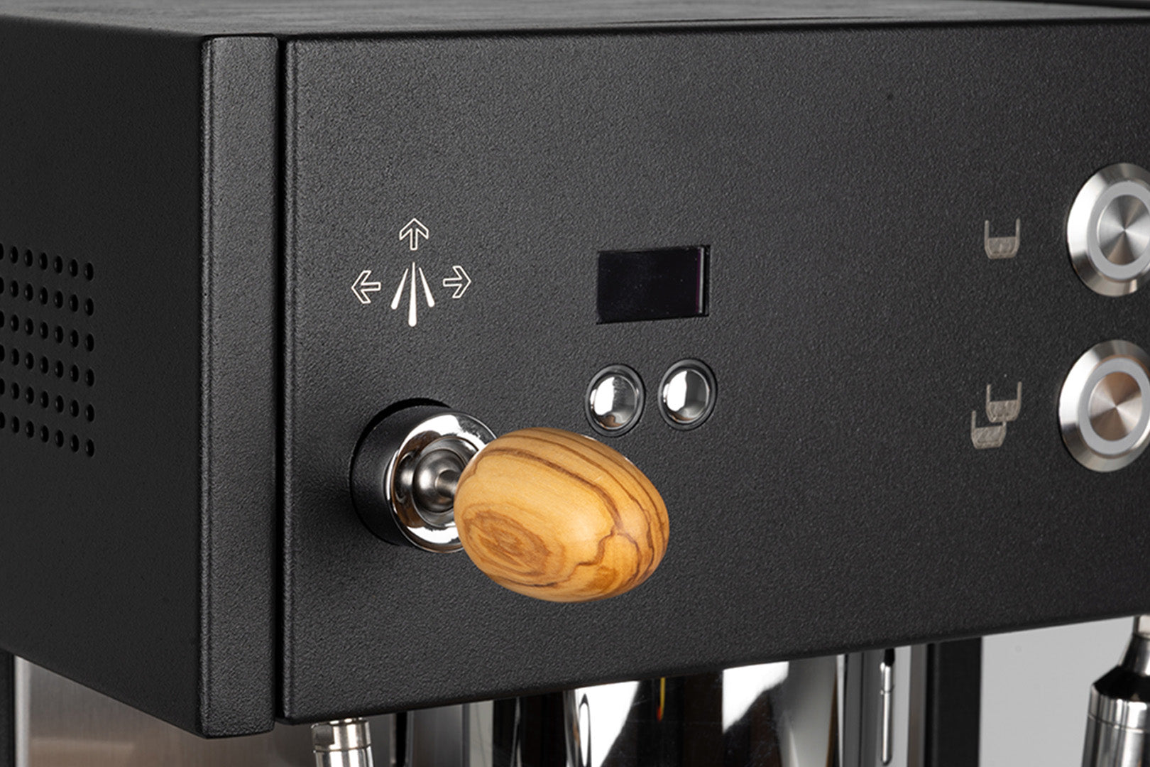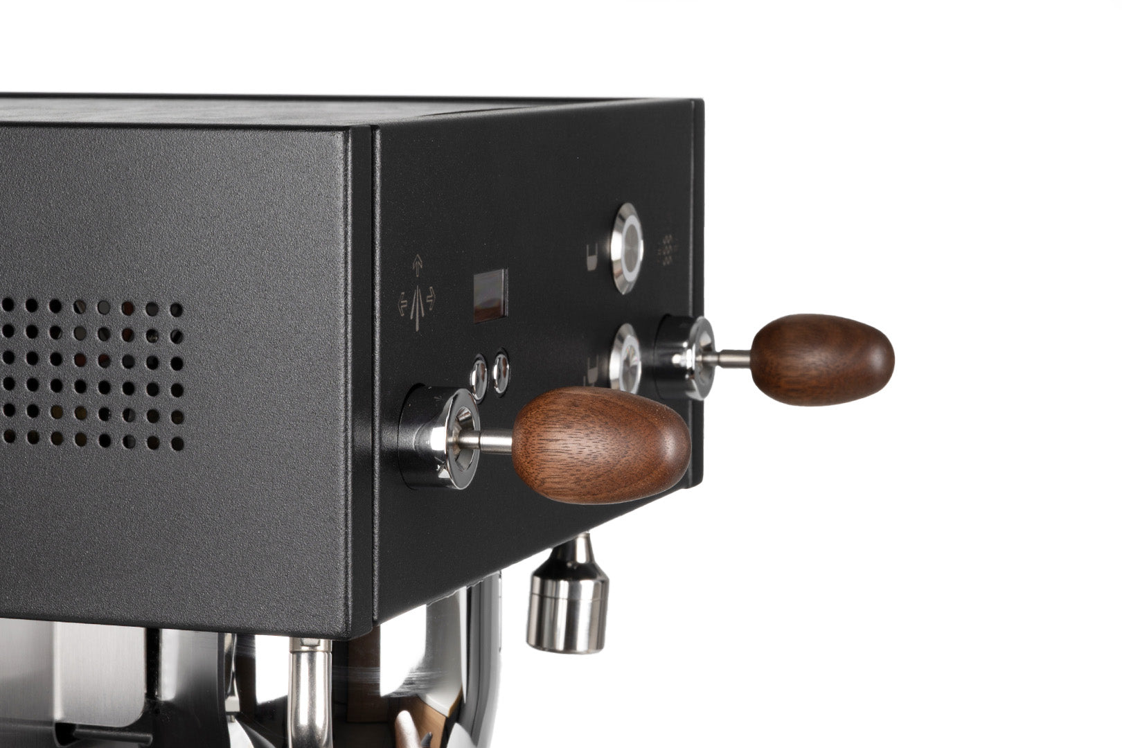 Nicht nur in der Funktionalität, auch im Design setzt die MOVE Maßstäbe. Die handgefertigten Griffe aus amerikanischem Walnussholz verleihen der Maschine eine luxuriöse Note, während das kompakte Design in jede Barista-Ecke passt. Praktische Funktionen wie der programmierbare ECO-Modus und die automatische Reinigung der Brühgruppe sorgen für eine einfache Wartung und eine erhöhte Langlebigkeit der Maschine.