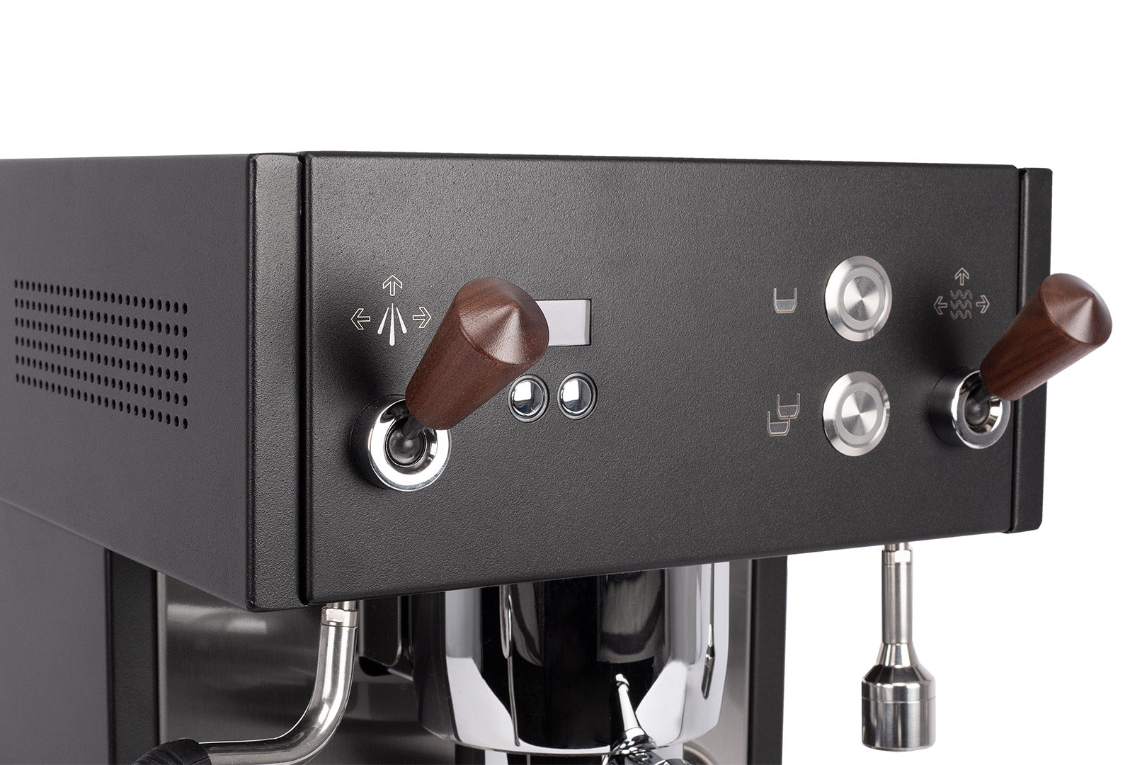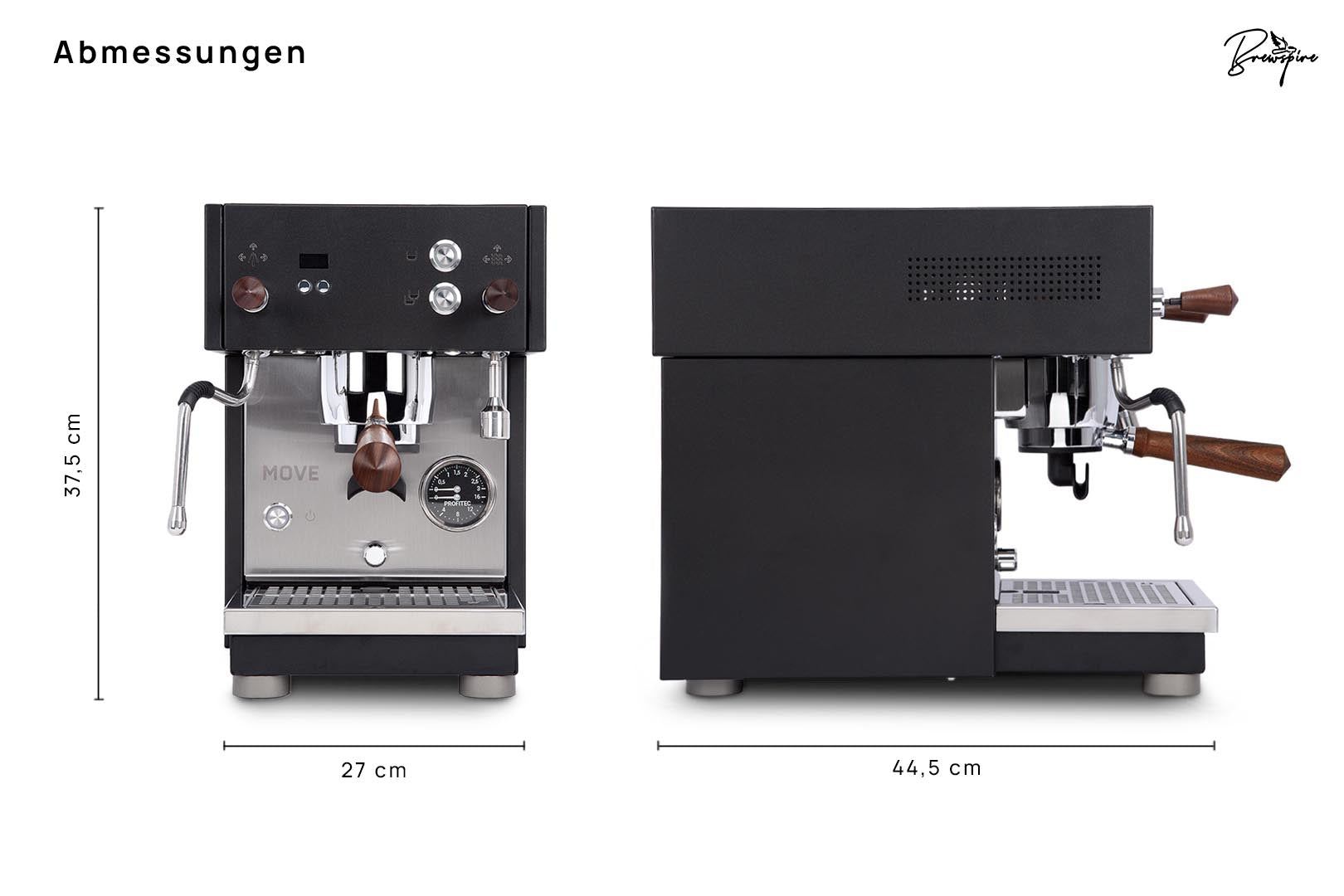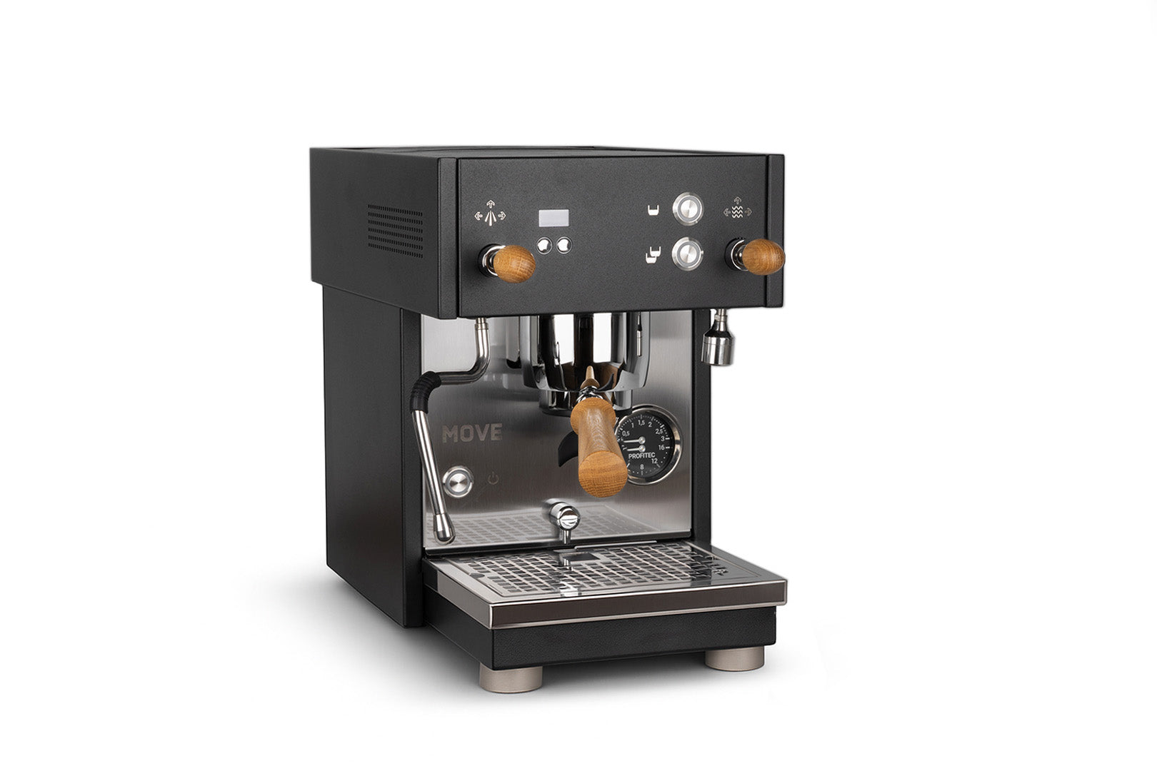 Nicht nur in der Funktionalität, auch im Design setzt die MOVE Maßstäbe. Die handgefertigten Griffe aus amerikanischem Walnussholz verleihen der Maschine eine luxuriöse Note, während das kompakte Design in jede Barista-Ecke passt. Praktische Funktionen wie der programmierbare ECO-Modus und die automatische Reinigung der Brühgruppe sorgen für eine einfache Wartung und eine erhöhte Langlebigkeit der Maschine.