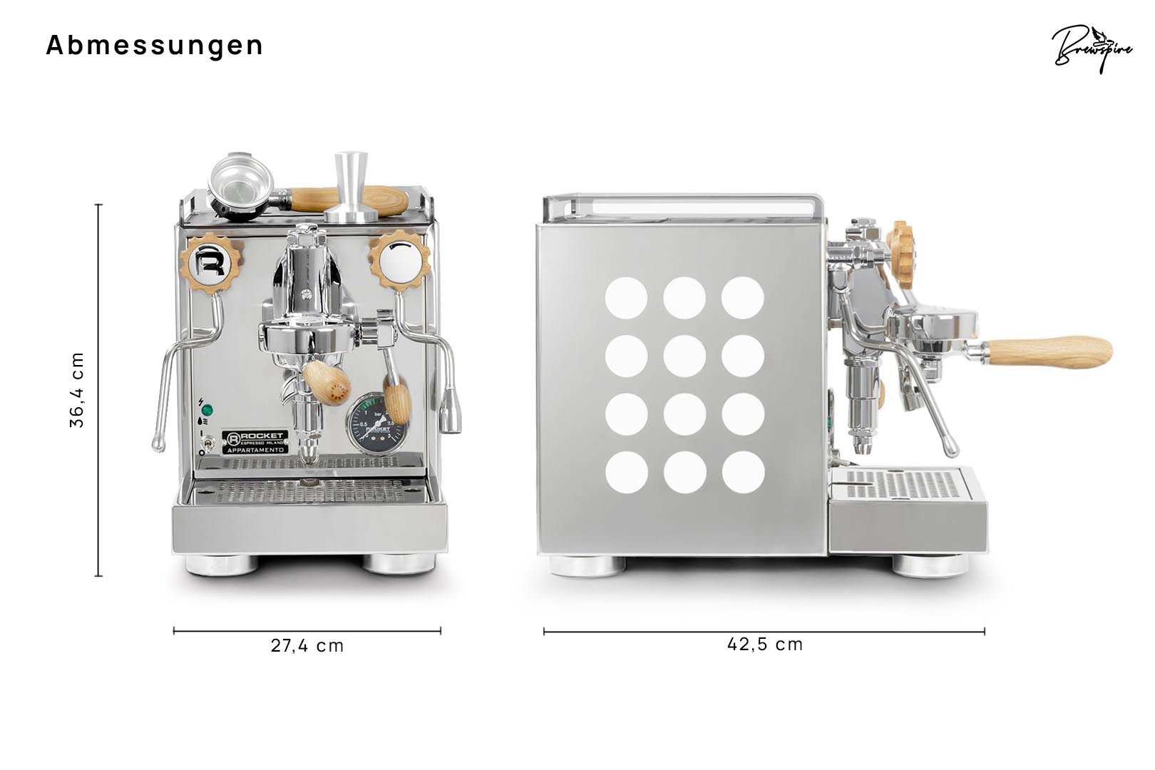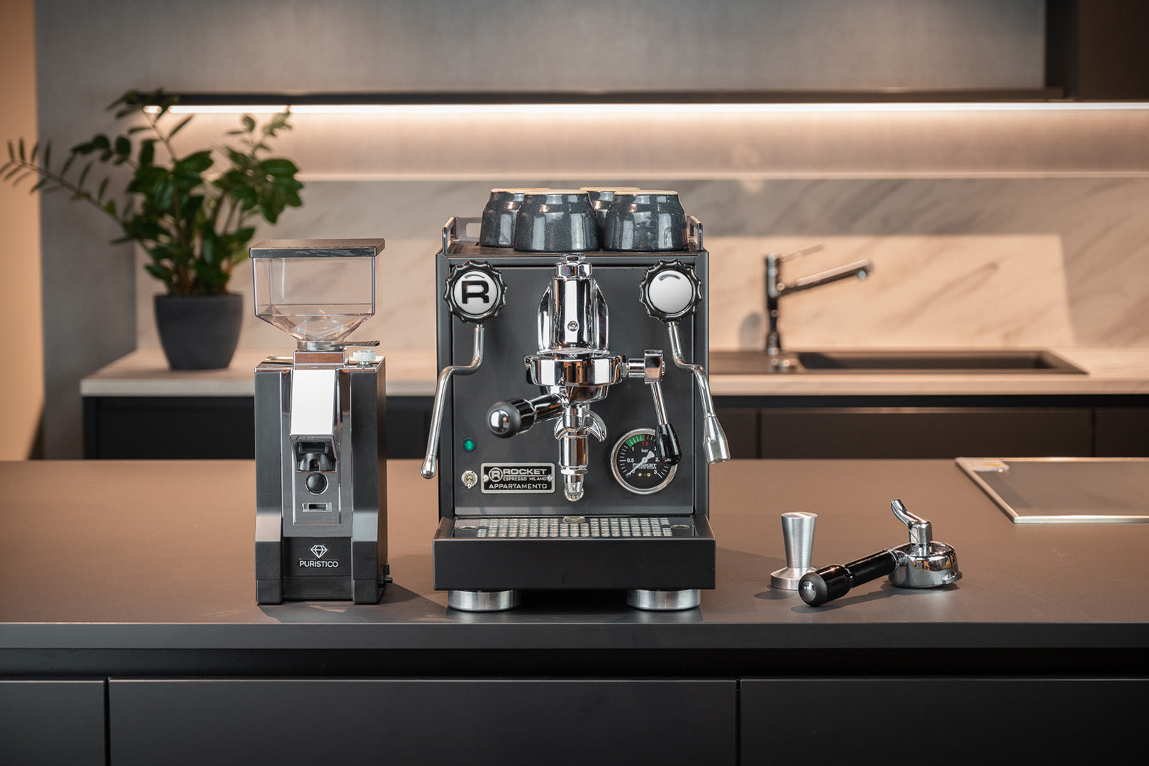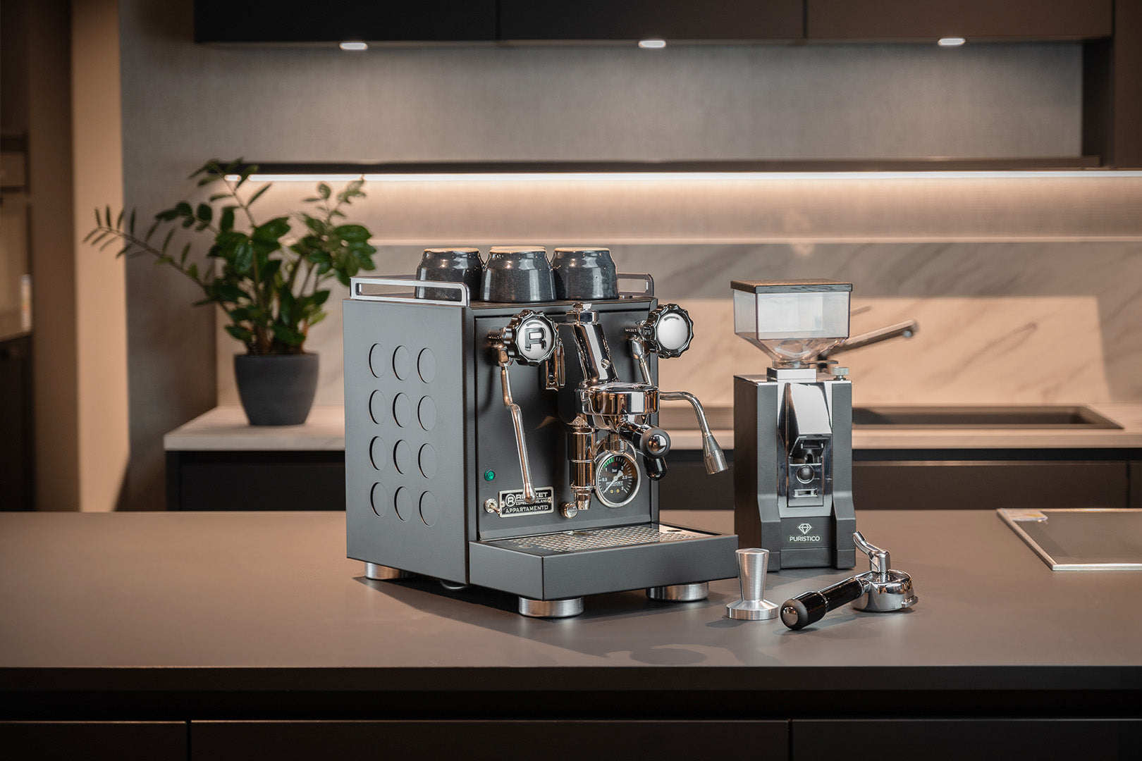 Nicht umsonst ist das Modell „Appartamento“ vom italienischen Hersteller Rocket eine der meistverkauften Siebträger-Espressomaschinen im Haushaltsbereich. Neben dem authentisch italienischen Design besitzt sie alles, was für einen guten Espresso oder Cappuccino notwendig ist. Sie verfügt über die bewährte E61-Brühgruppe welche eine exzellente, cremareiche Espressoextraktion möglich macht. Das Aufschäumen von Milch parallel zur Espressoextraktion ist ebenfalls problemlos möglich.