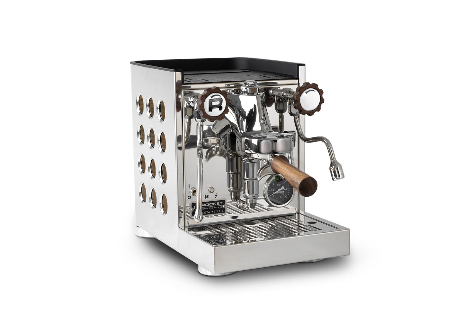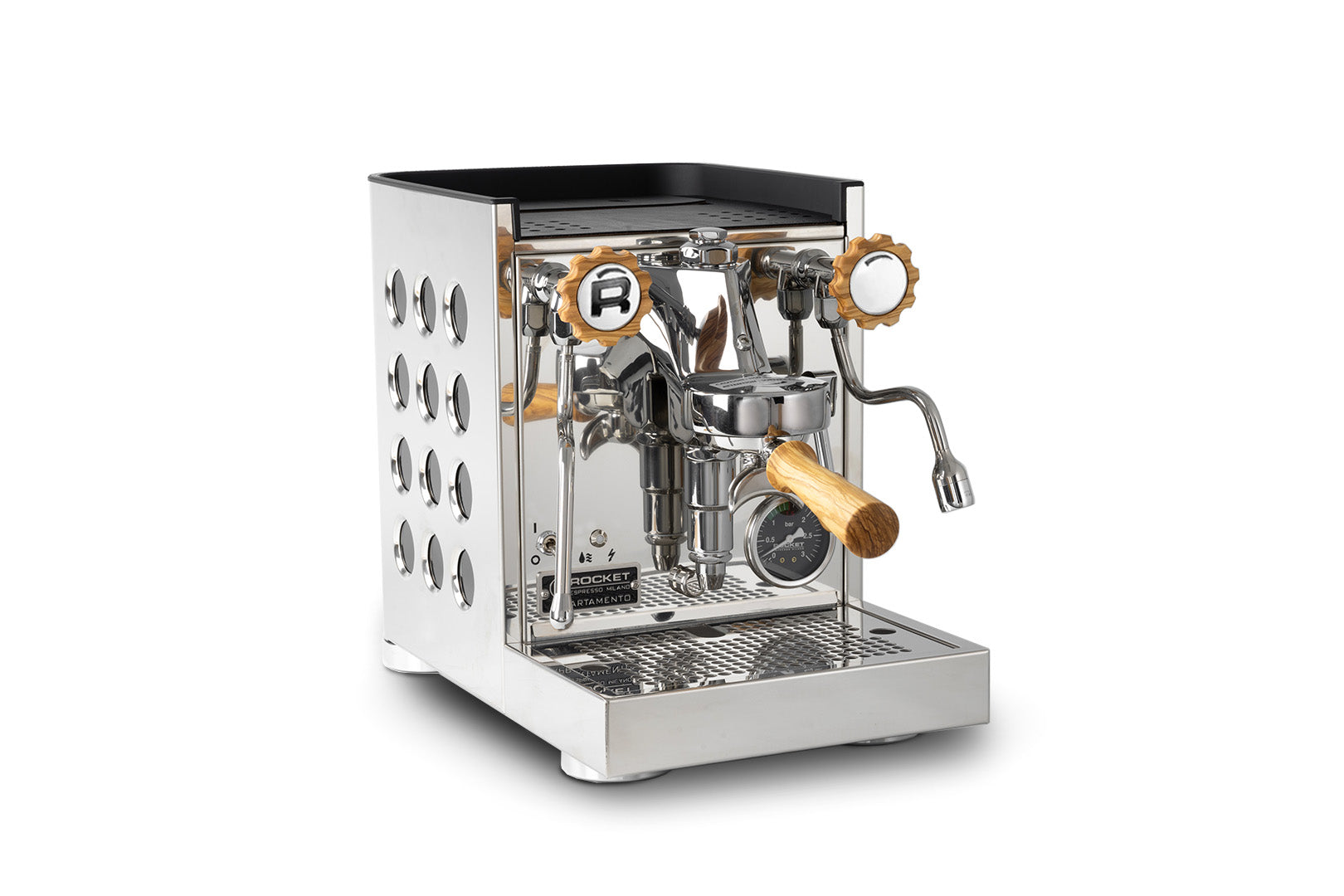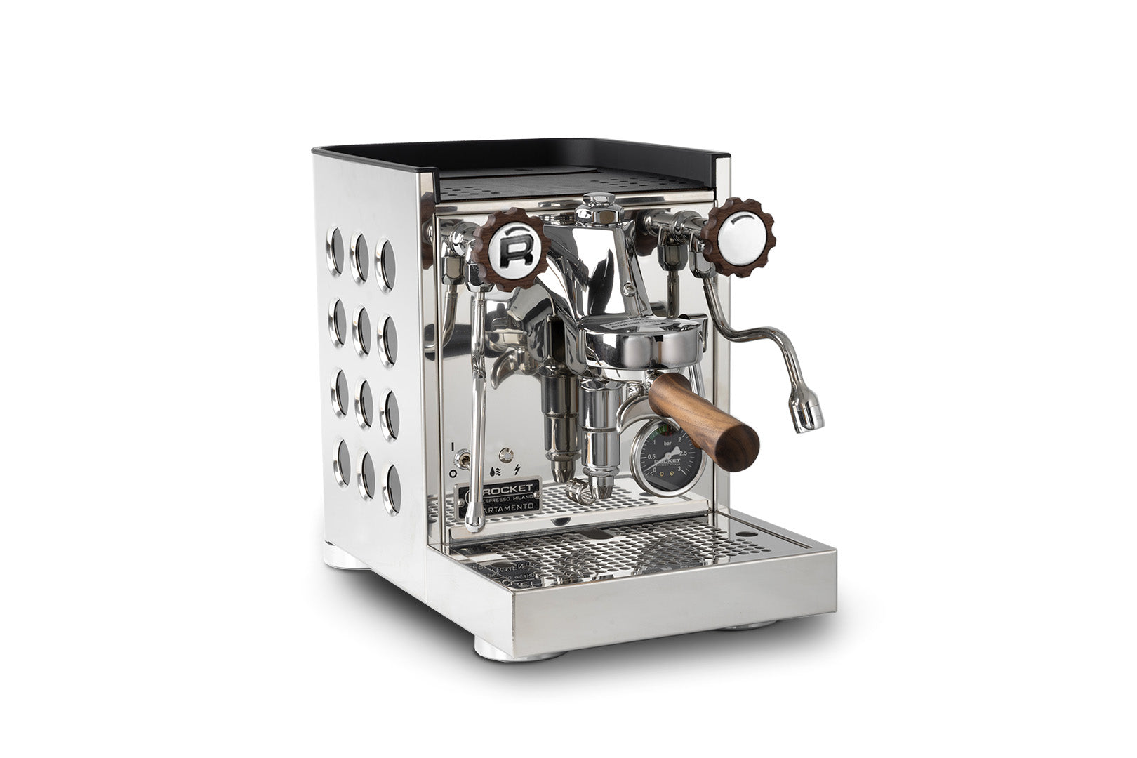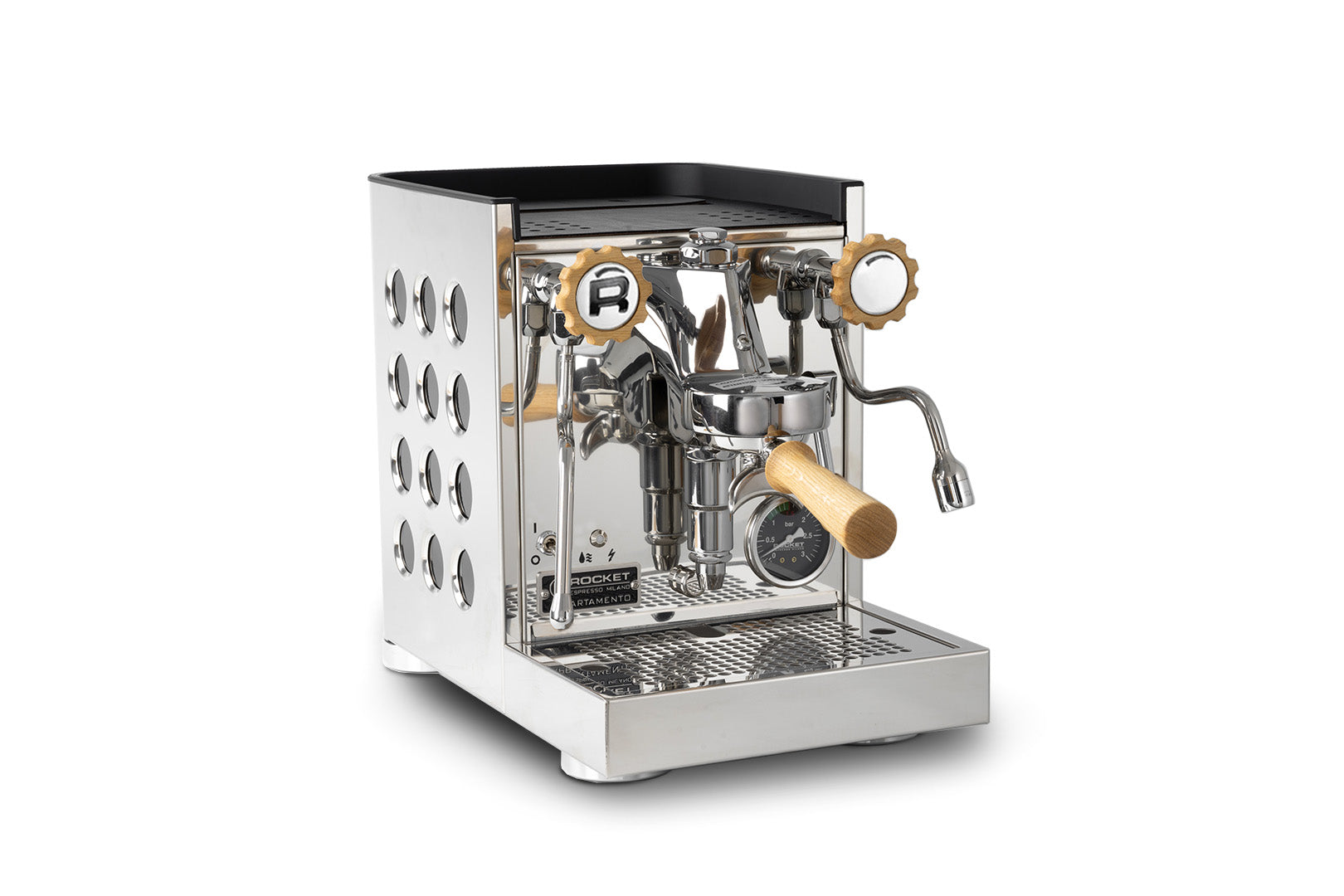 Die Rocket Appartamento. Mit dieser Bezeichnung ist in der Regel alles klar: Sie steht seit Markteinführung als eine unangefochtene Ikone in der Heimbaristaszene für klassisches Design zu kompakten Abmaßen. Die "TCA" (Temperature Control Adjustment) hat nicht nur das raffinierte Design-Upgrade erhalten, sondern verfügt auch über insgesamt vier verschiedene Temperaturstufen.
