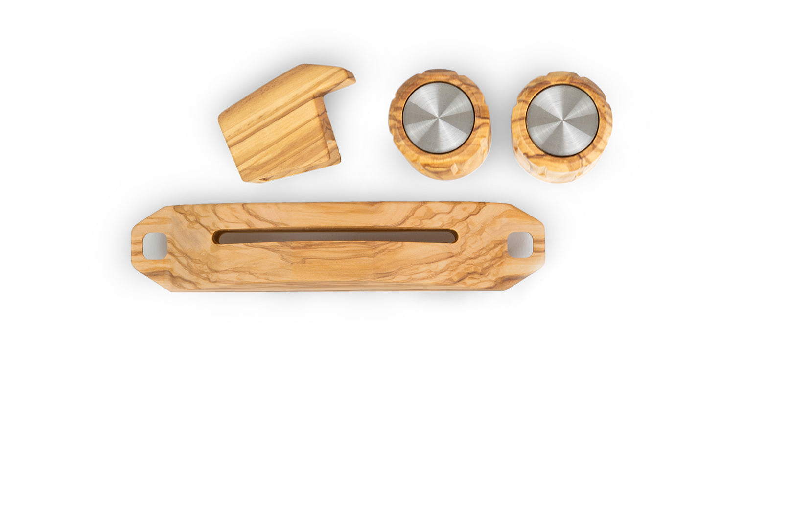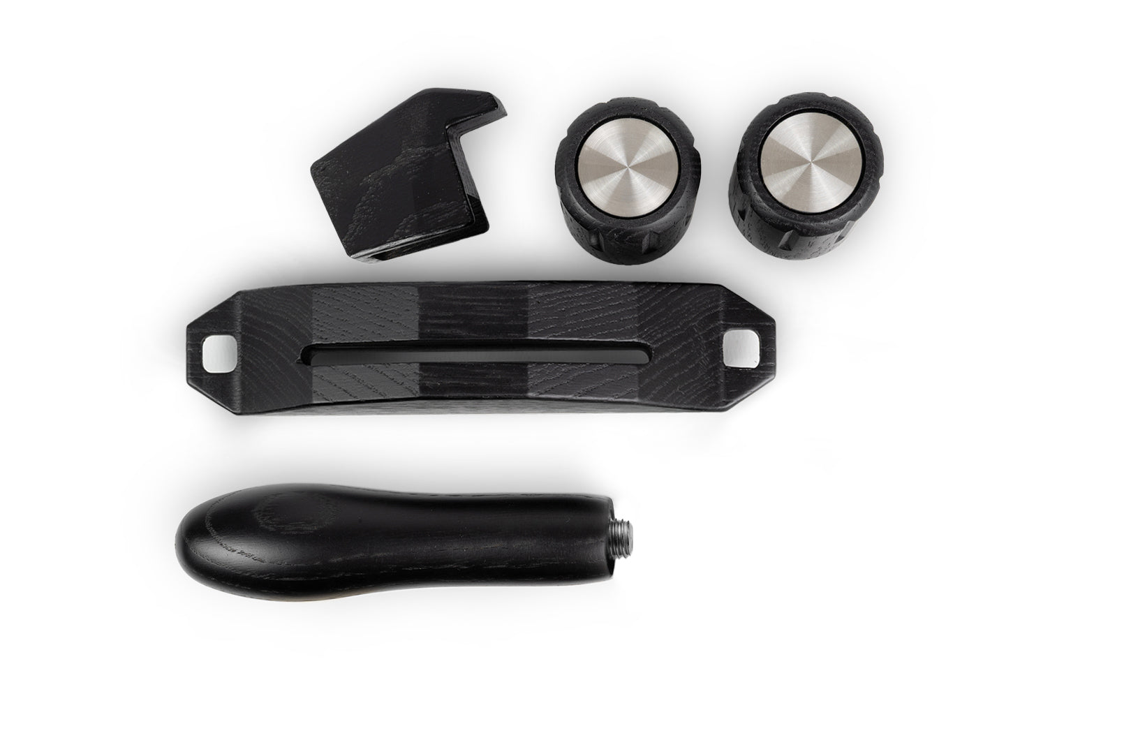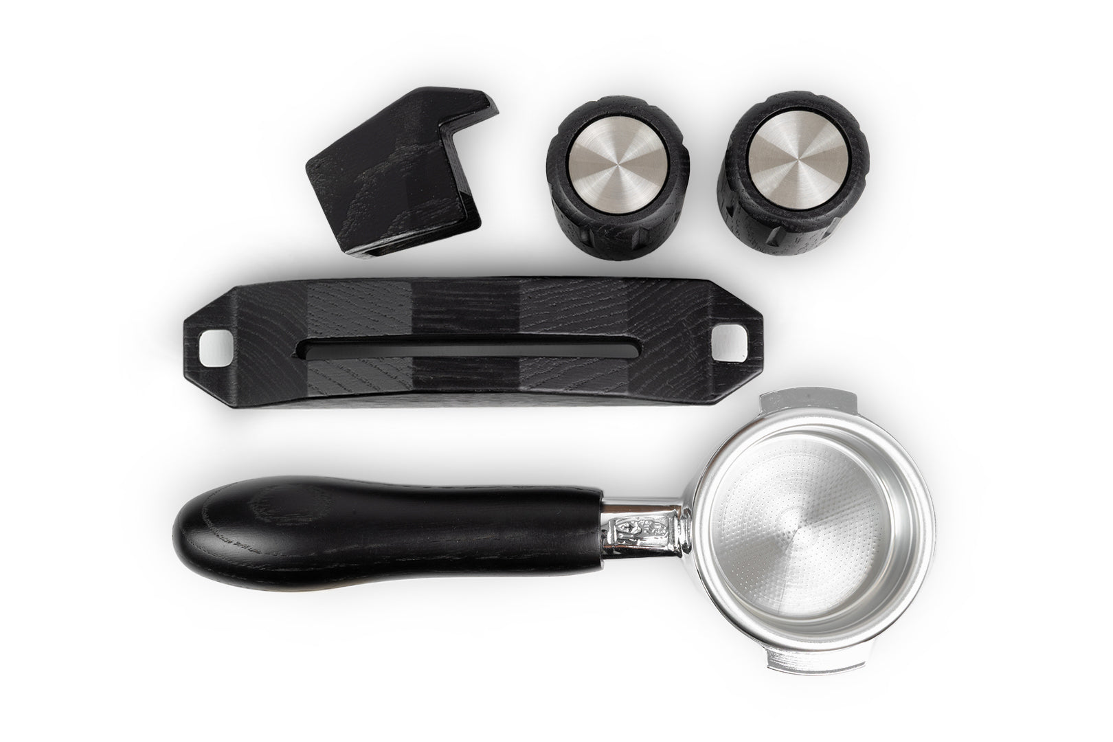 Dieses Veredelungsset umfasst zwei Drehknäufe, einen Paddlerahmen und das Paddle. Alle Teile sind in liebevoller Handarbeit gefertigt und bieten eine optimale Passgenauigkeit. Um das Erscheinungsbild ihres Barista Setups perfekt abzurunden, bieten wir in unserem Shop zusätzlich passende Siebträger- und Tampergriffe an.
