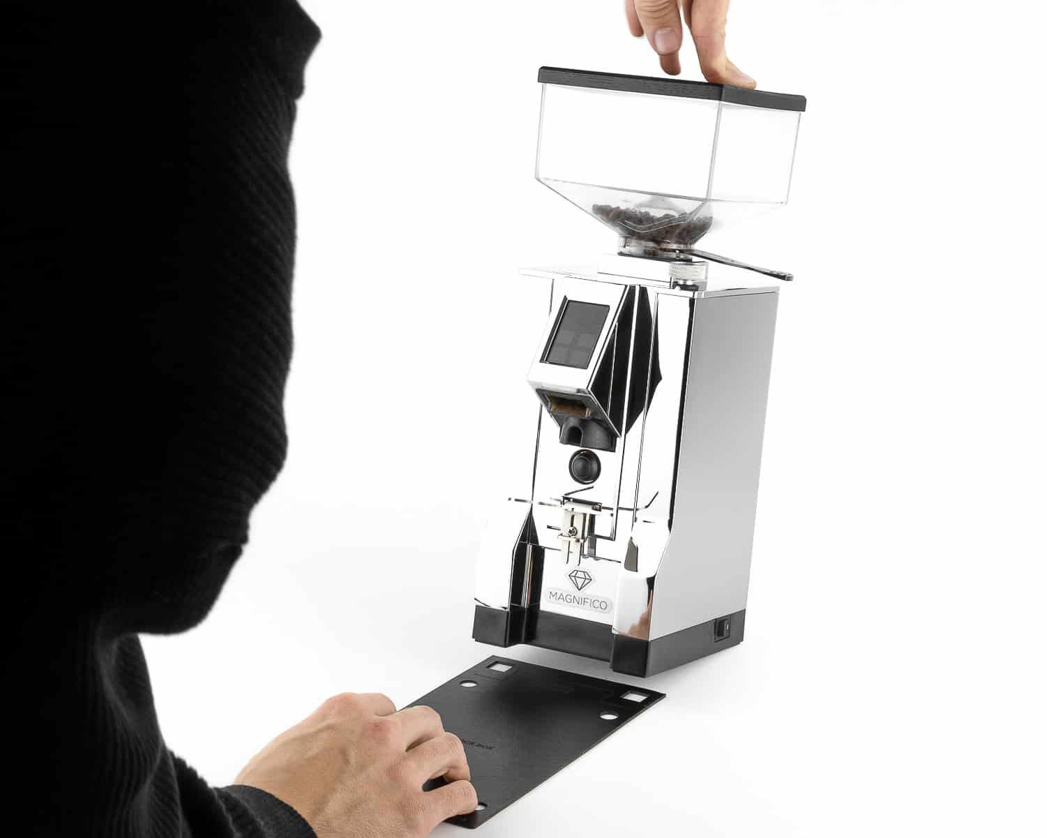 Das eigenständige Design der eurista Abklopfbox erlaubt ein freies Positionieren in der Kaffeeecke. Darüber hinaus kann sie direkt vor der Espressomühle positioniert als zusätzlicher Schmutzfänger dienen. Für die Nutzer eines Eureka Mignon-Modells ist hierfür sogar eine speziell entwickelte Verbindungsmatte erhältlich, durch die Mühle und Klopfbox zu einer Einheit werden. So gehen keine Kaffeereste mehr daneben!