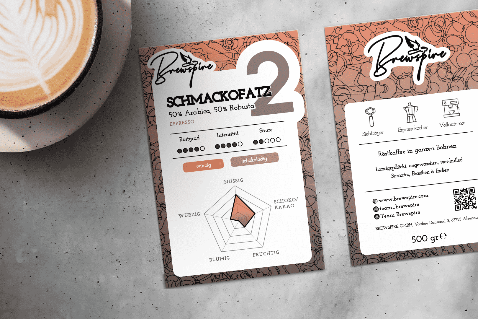 Brewspire Röstkaffee “Schmackofatz 2” Espresso – 500g ganze Bohnen