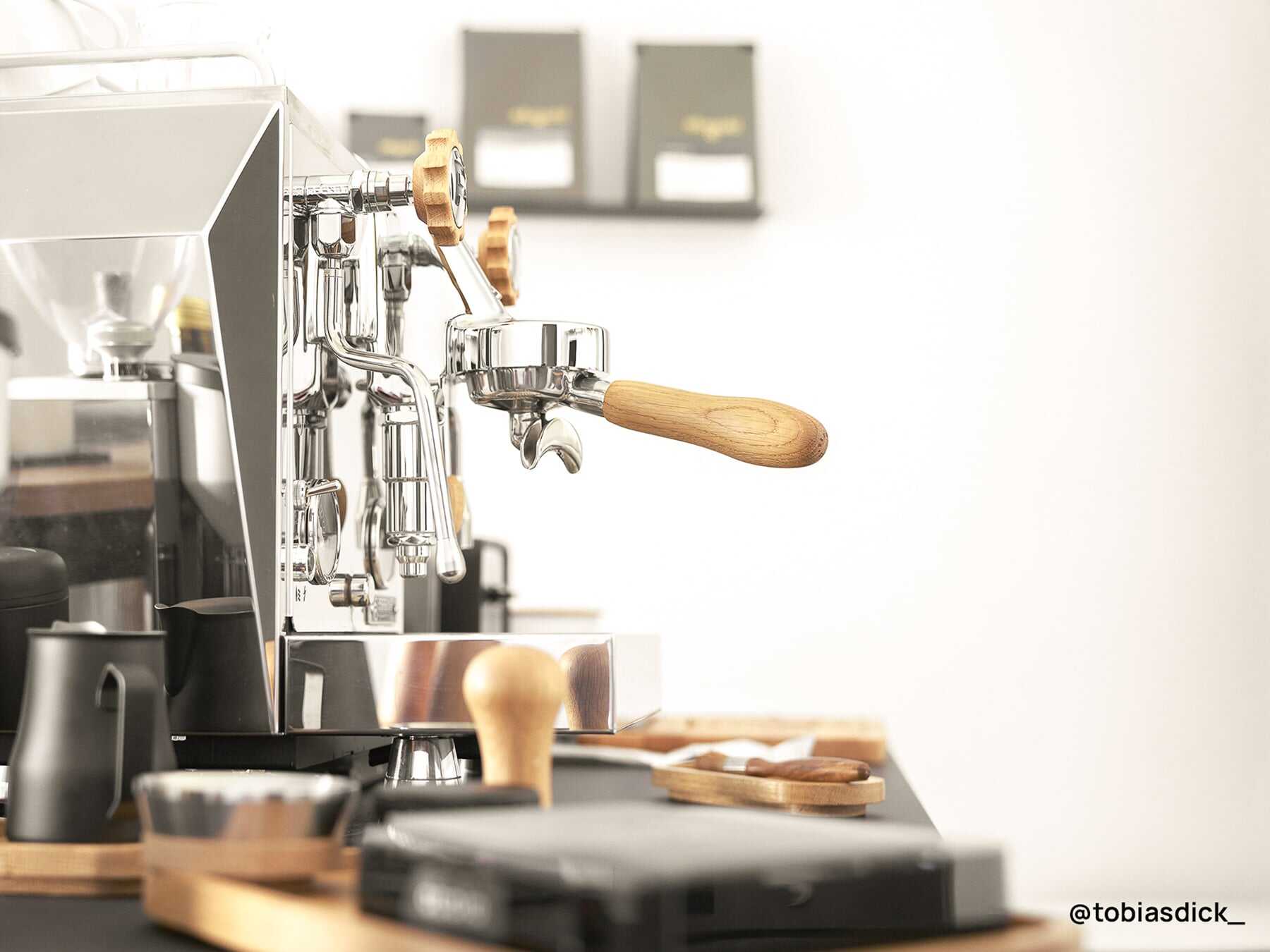 Der Wechsel auf Siebträgerkörper aus Edelstahl bringt einige Vorteile mit sich: Verbesserte Hygiene durch einfache Reinigung der Oberfläche sowie das Ausbleiben von Chromablösungen, wie sie bei herkömmlich verchromten Messing-Siebträgern auftreten können. Die korrosionsfreie Oberfläche der Edelstahl-Siebträgerkörper behält über lange Zeit ihren Glanz. Auch alle Verschraubungen sind aus Edelstahl gefertigt. So sind das eingelassene M8-Gewinde im Bezugshebelknauf und die Ventilschnittstelle der Drehräder ebenfalls aus Edelstahl.