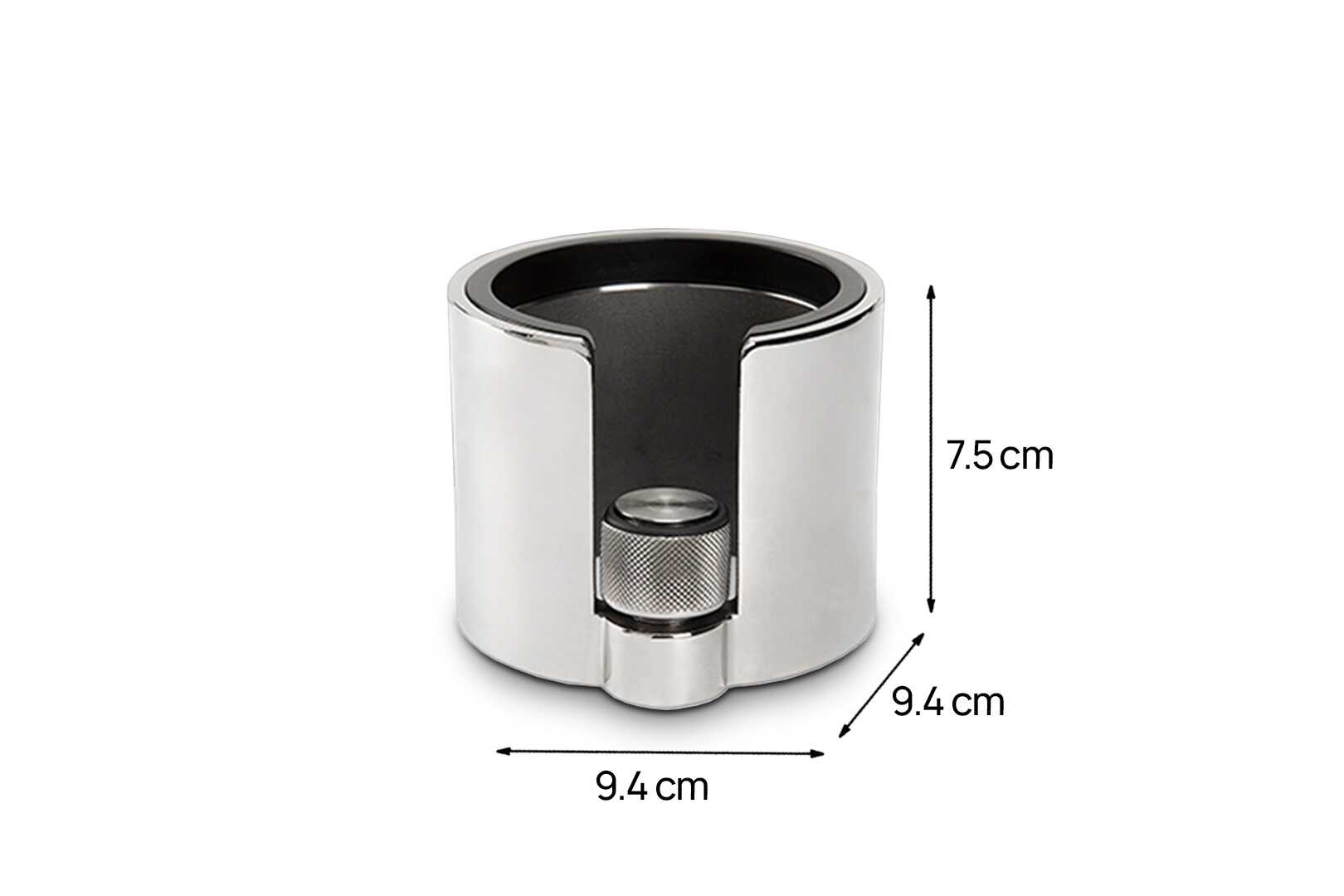 Mit Abmessungen von 94 mm x 75 mm präsentiert sich die Tampingstation in einer kompakten Bauweise, die sich problemlos in Ihrer Kaffeeecke integrieren lässt. Der verwendete polierte Edelstahl, bietet dabei ein zeitloses und flexibles Design, dass sich nahtlos in die bestehende Umgebung einfügt.