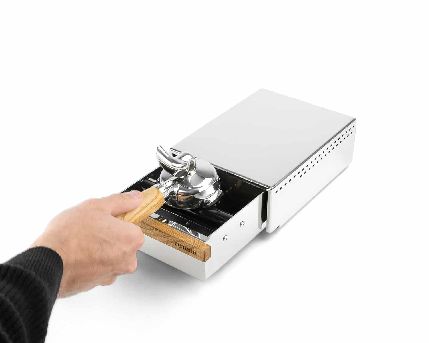 In so mancher Kaffee-Ecke kann es eng werden, deshalb sollten Sie umso mehr Platz für die Kaffeezubereitung freihalten. Die eurista Klopfschublade M bildet den perfekten Kompromiss aus Volumen und Kompaktheit. Die Größe harmoniert mit den gängigen Mühlen im Heimbarista-Bereich wie der Eureka Mignon, ECM S64 oder Rocket Faustino.