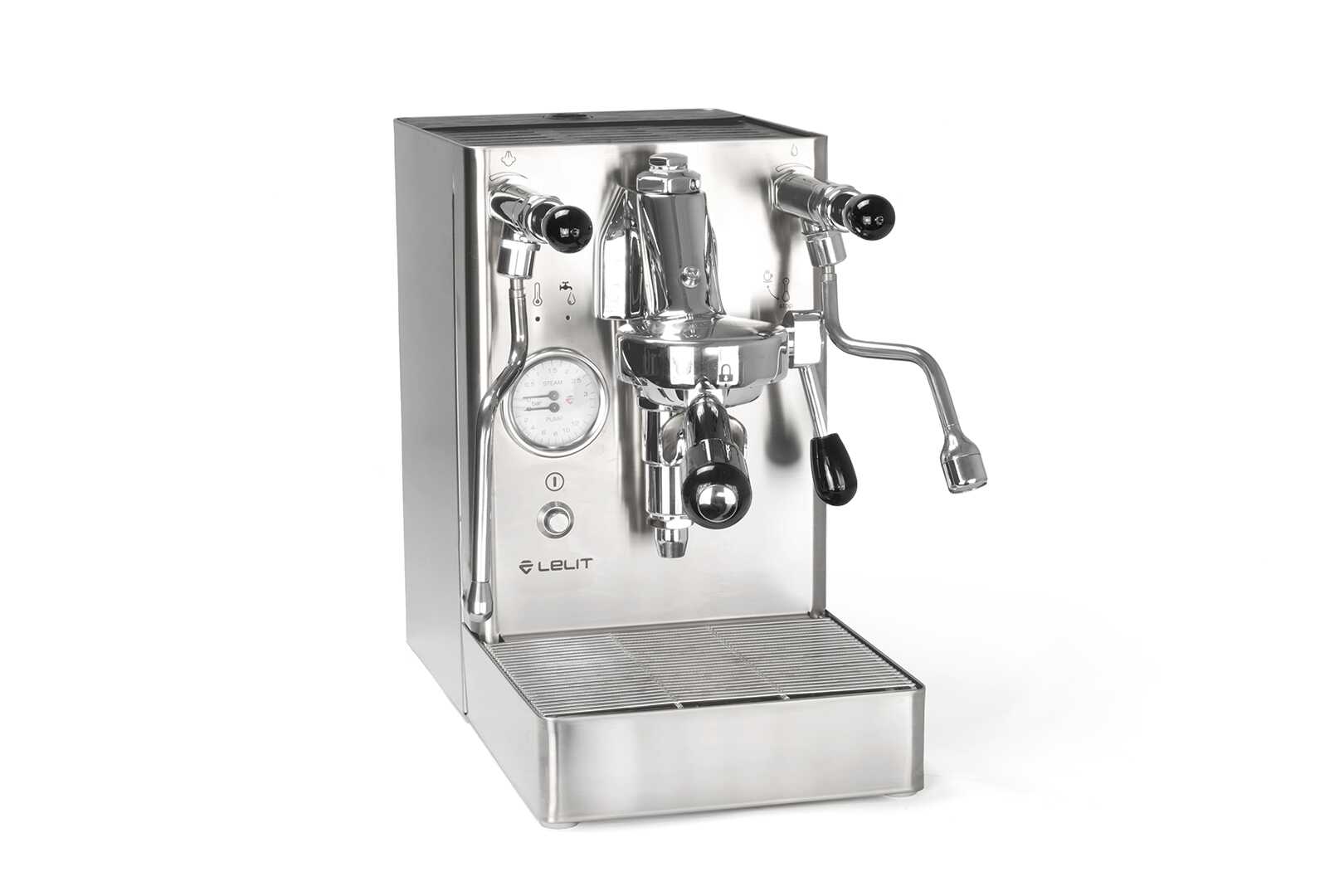 Das Gehäuse ist in satiniertem Edelstahl gehalten und stellt somit die verchromten Elemente in den Vordergrund. Mit den von uns verbauten Kippventilen, welche bei Betätigung zur Seite hin einrasten, kann Wasserdampf und Heißwasser bezogen werden, während der nach oben herausnehmbare Wassertank intuitiv und einfach aufgefüllt werden kann. Ein individuelles Merkmal ist der originale Siebträger von Lelit, dessen Ausläufe den Espresso nicht wie üblich von der Seite, sondern direkt von vorne in die Tasse leiten.