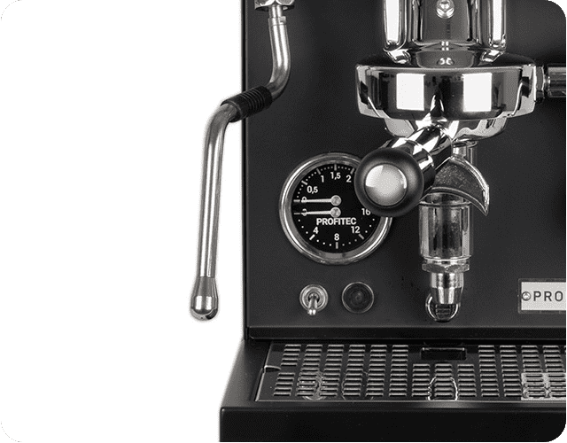 Anknüpfend an den hohen Profitec-Detailanspruch heben wir hier Besonderes hervor: Hochwertige Kunstlederakzente auf der Tassenablage und in den Drehradeinsätzen, eingebettet in die schwarz matte Pulverbeschichtung des Maschinengehäuses. Handwerklich veredelt mit Fokus auf Design und Anwenderfreundlichkeit begeistert dieses Preis-Leistungs-Platzwunder jeden Heimbarista – und die, die es werden wollen!