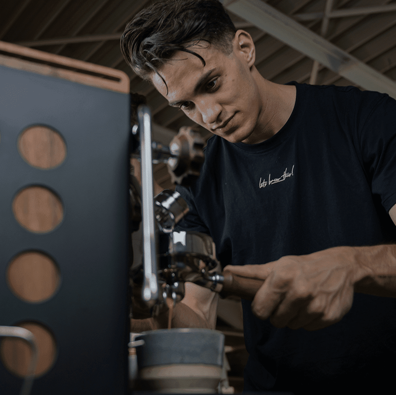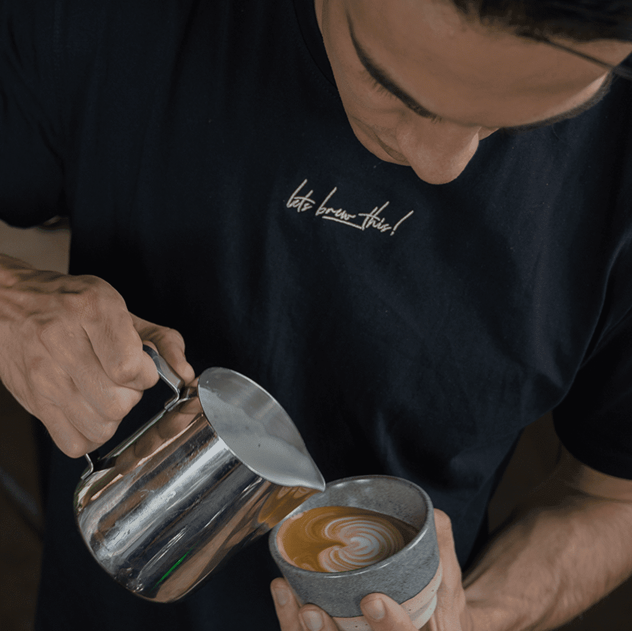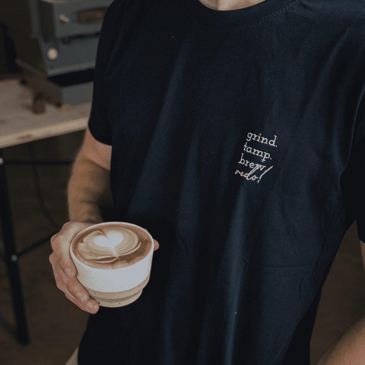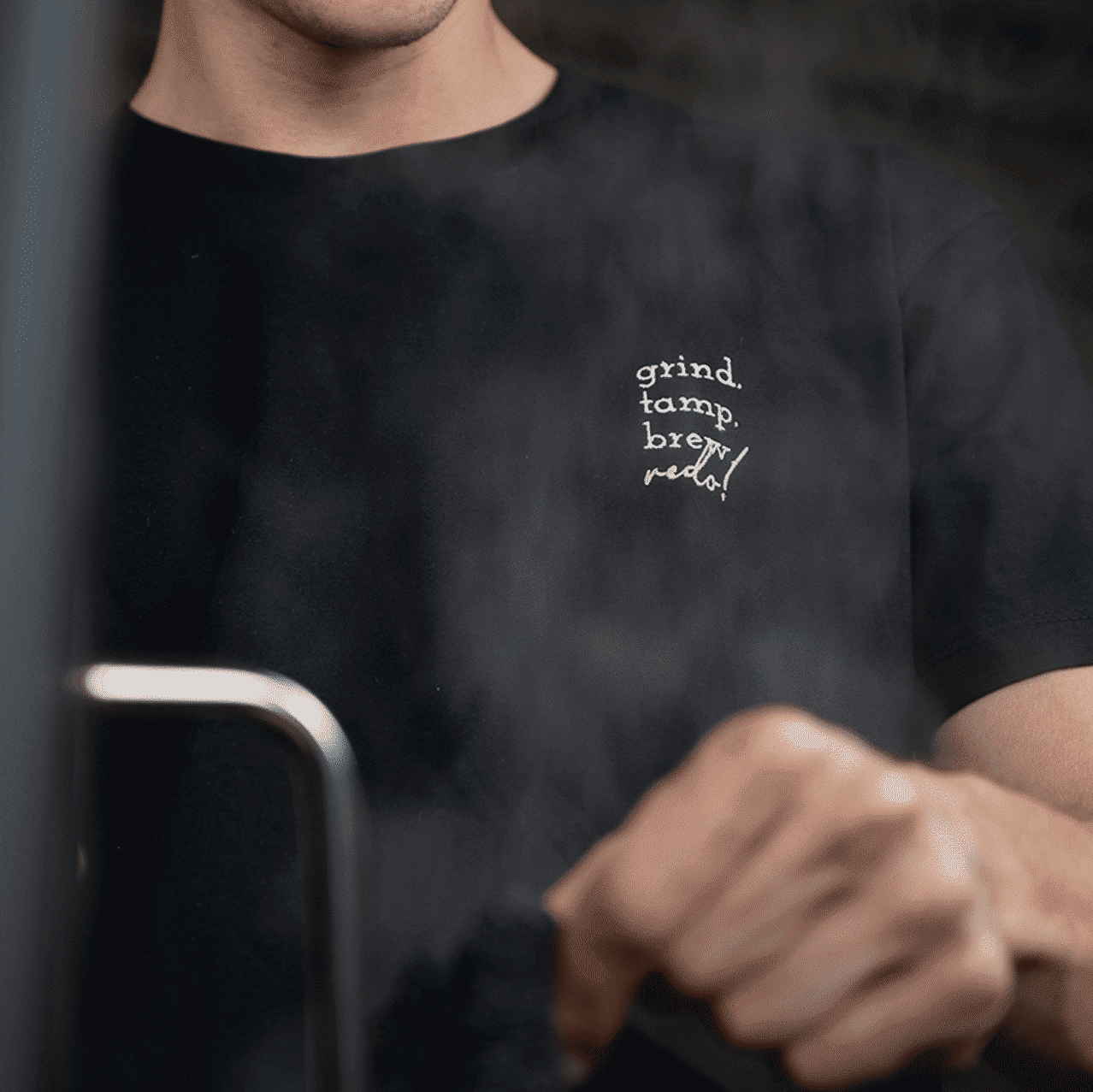 Was haben Siebträgermaschinen und bestickte T-Shirts gemeinsam? Sie transportieren die Leidenschaft für das Thema Kaffee, sind besonders langlebig und können so individuell sein wie Ihre Nutzer. Unsere 4 Designs reichen vom dezenten fliegenden Siebträger, über die Catch-Phrases „grind. tamp. brew. redo!“ und „lets brew this!“ bis hin zum Ursprung des Genusses, der Coffea Arabica.
