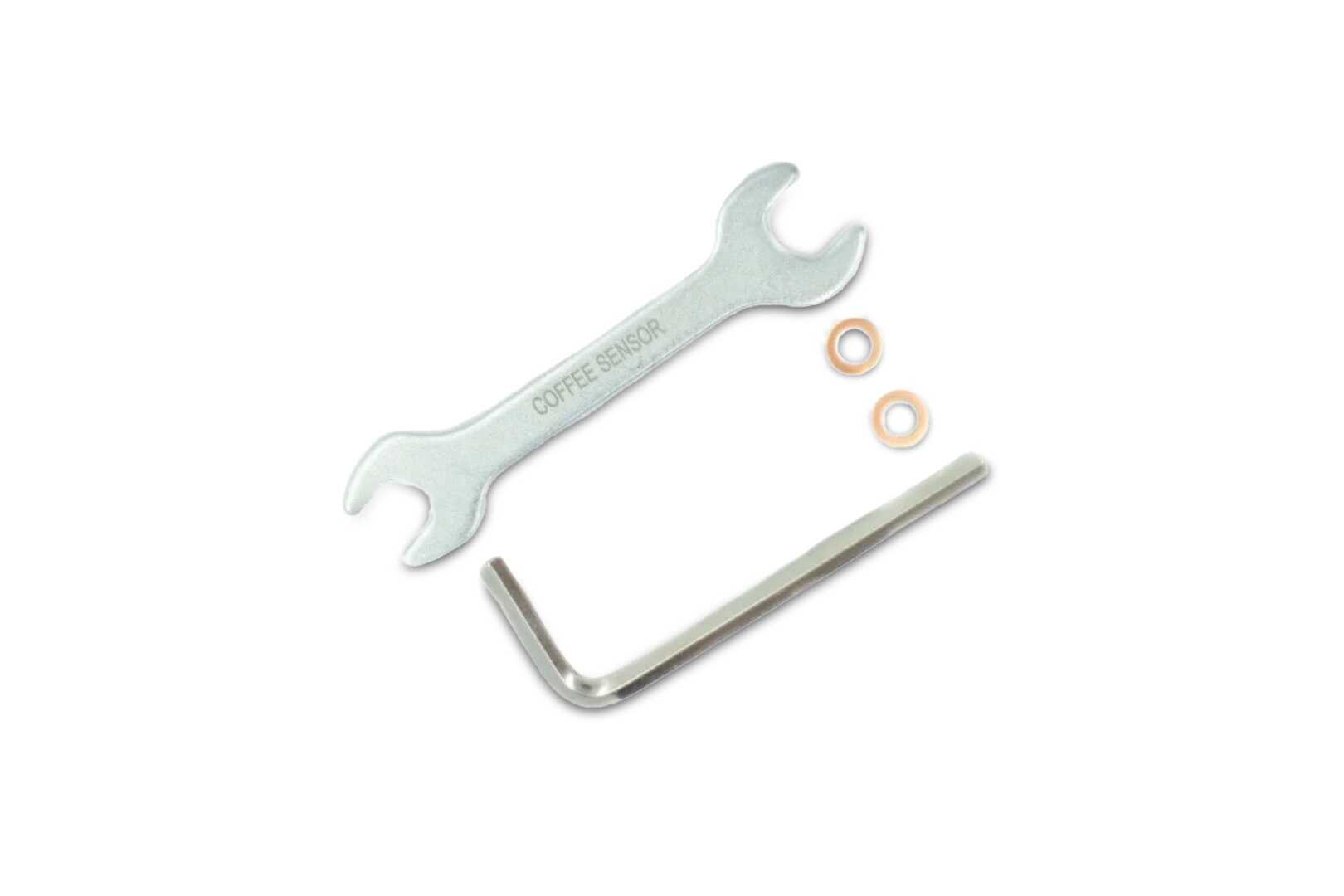 Das Thermometer wird für verlässliche Ergebnisse direkt am Brühkopf angebracht. Mit dem beiliegenden Inbusschlüssel lösen Sie einfach die Mutter am Brühkopf und platzieren das Thermometer am so freigelegten Gewinde. Anschließend muss es nur noch festgezogen werden. Vor dem ersten Kaffeebezug empfehlen wir einen Dichtheitstest mittels eines Blindsiebs.
