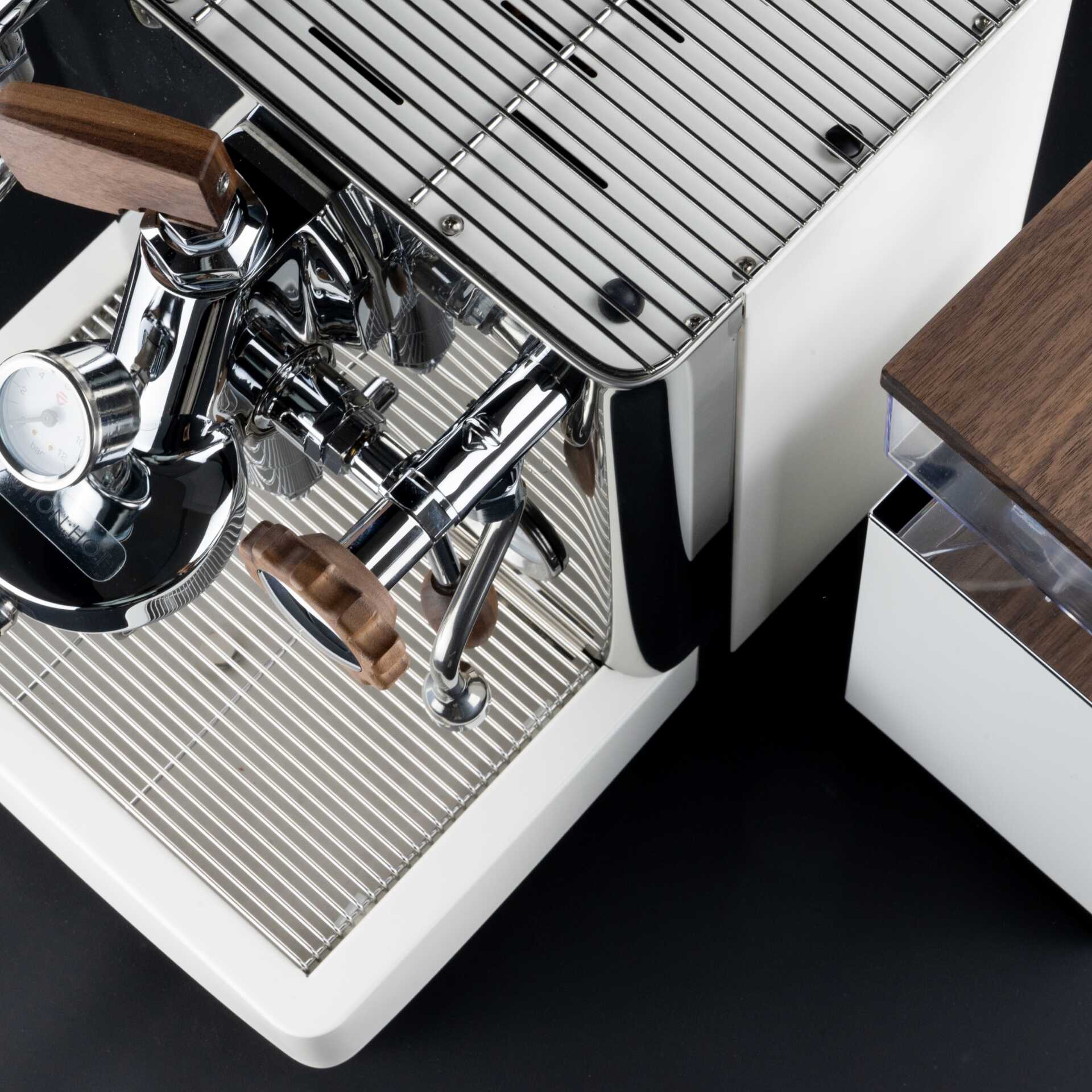 Der Wechsel auf Siebträgerkörper aus Edelstahl bringt einige Vorteile mit sich: Verbesserte Hygiene durch einfache Reinigung der Oberfläche sowie das Ausbleiben von Chromablösungen, wie sie bei herkömmlich verchromten Messing-Siebträgern auftreten können. Die korrosionsfreie Oberfläche der Edelstahl-Siebträgerkörper behält über lange Zeit ihren Glanz. Auch alle Verschraubungen sind aus Edelstahl gefertigt. So sind das eingelassene M8-Gewinde im Bezugshebelknauf und die Ventilschnittstelle der Drehräder ebenfalls aus Edelstahl.